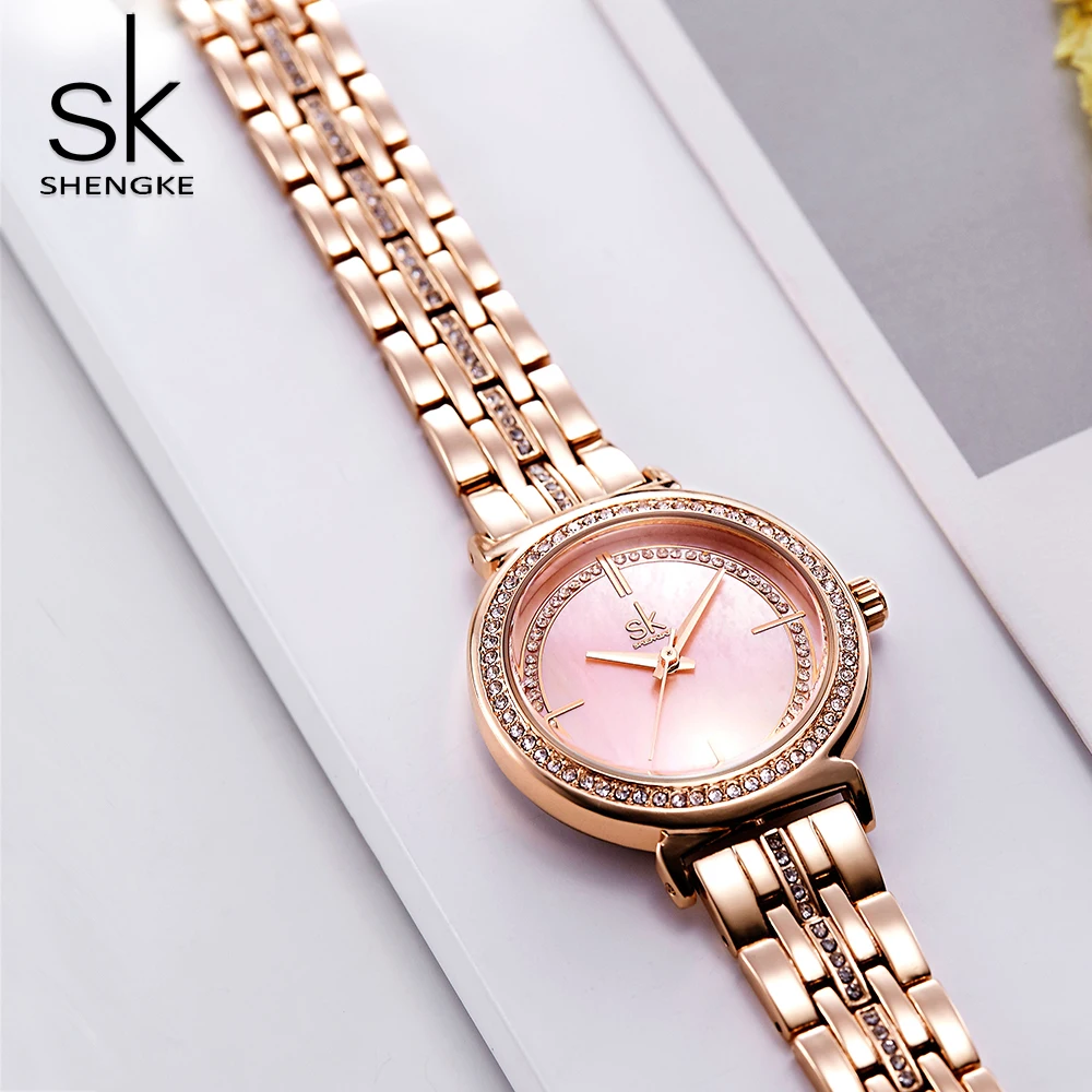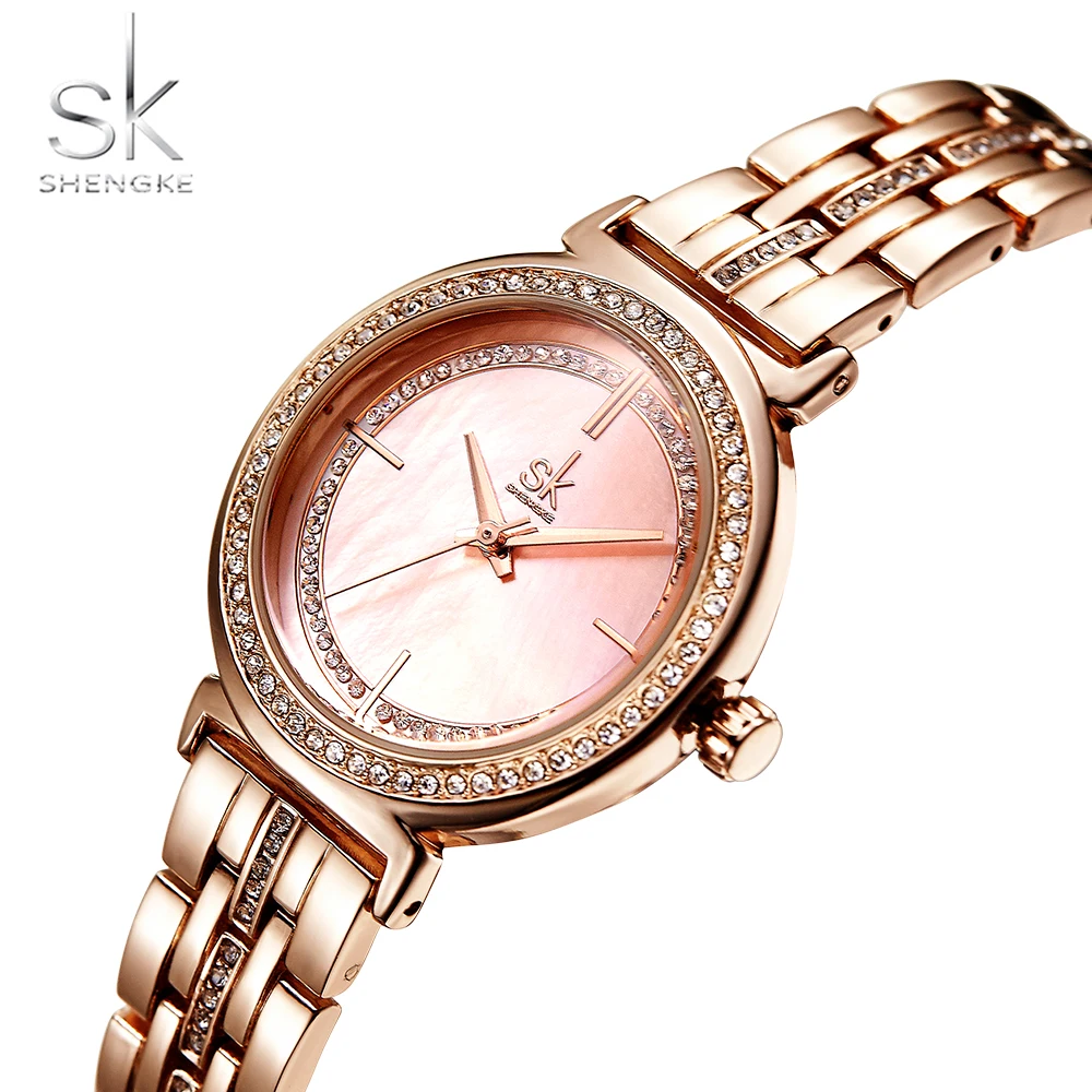 Женские кварцевые часы Shengke, розовое золото, нержавеющая сталь