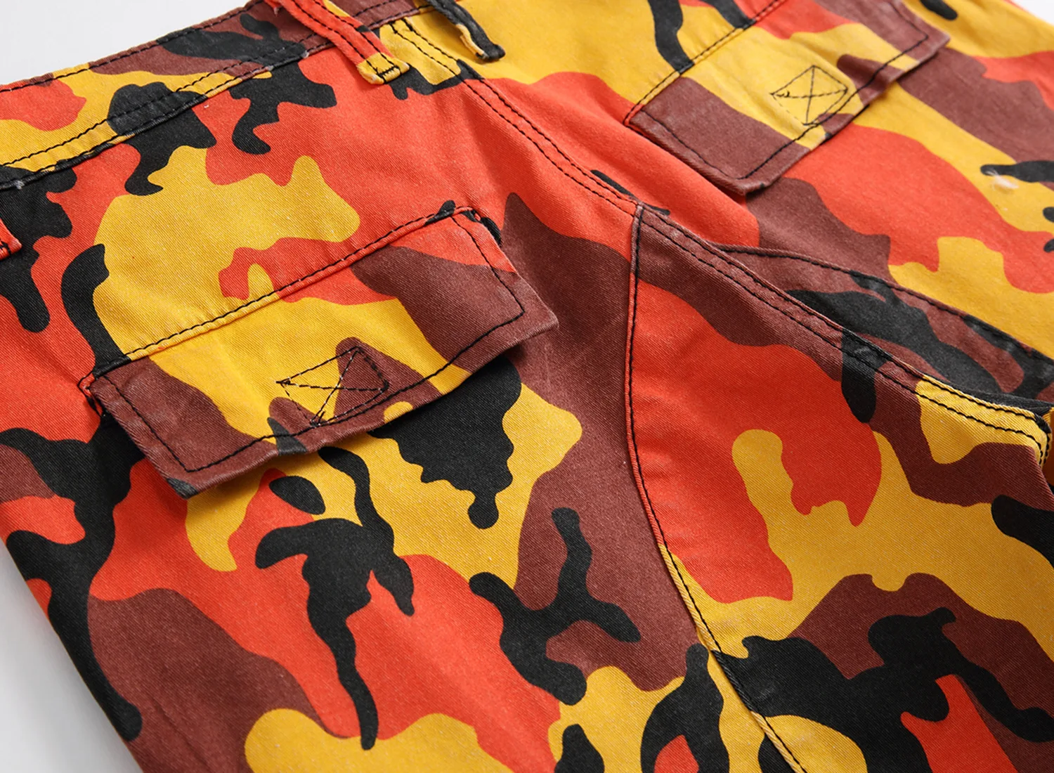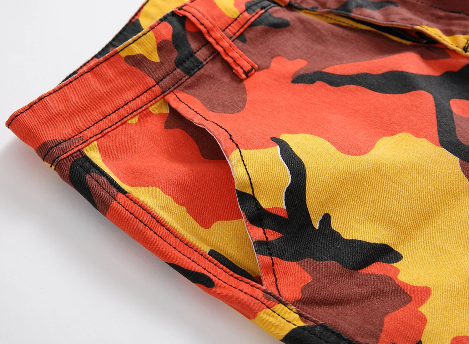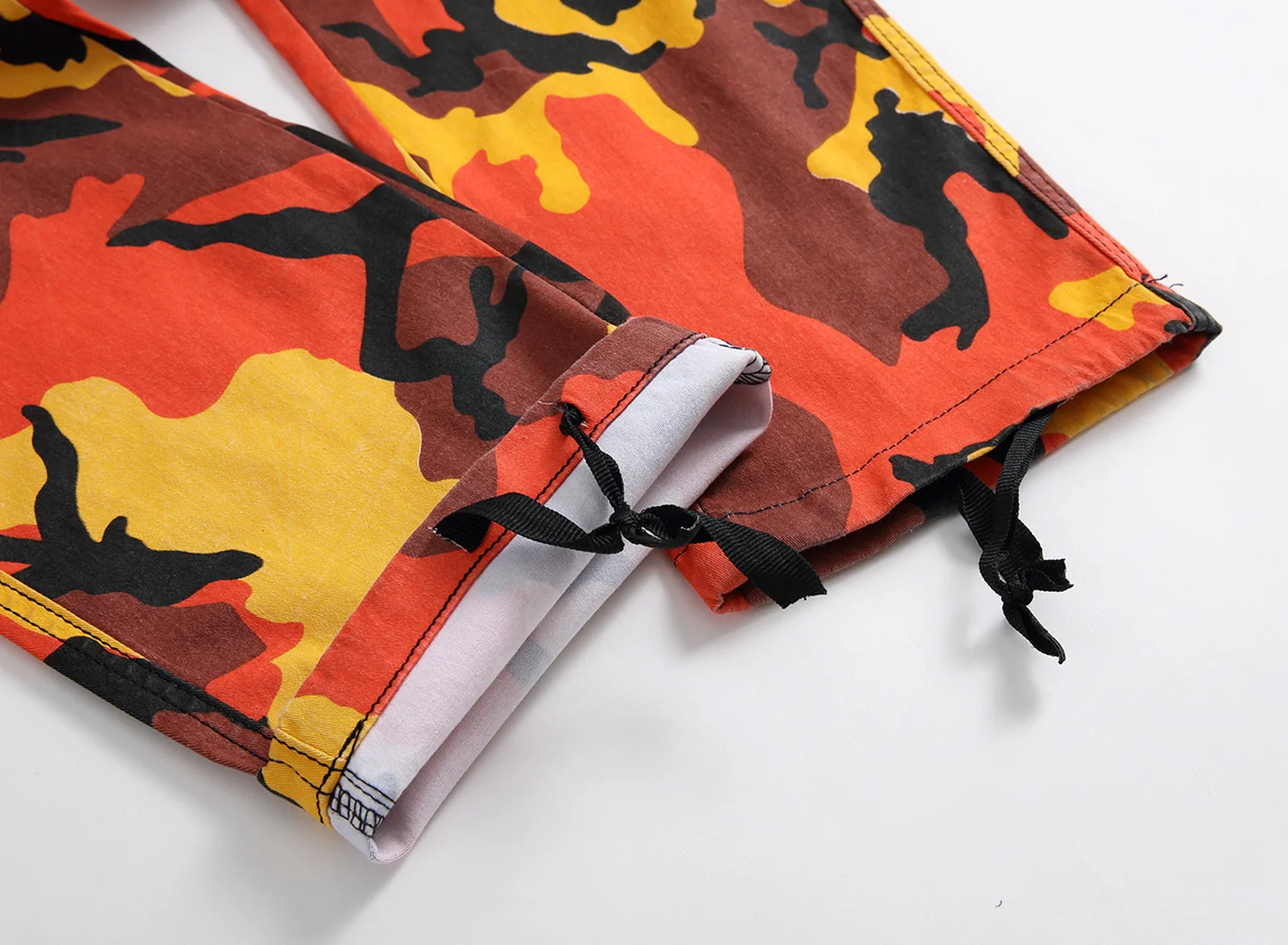 Мужские камуфляжные оранжевые камуфляжные прямые Стрейчевые брюки м...