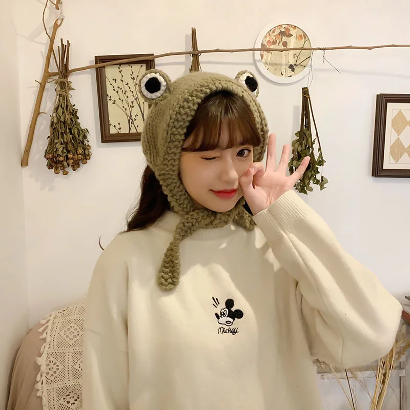 Модная забавная шапка, шляпа лягушки, вязаная шапка, унисекс, Женский трикотажный милый мультяшный аксессуар, для вечерние в стиле хип-хоп