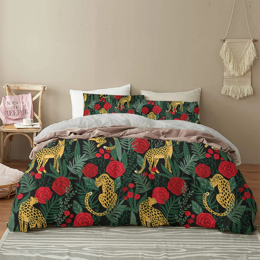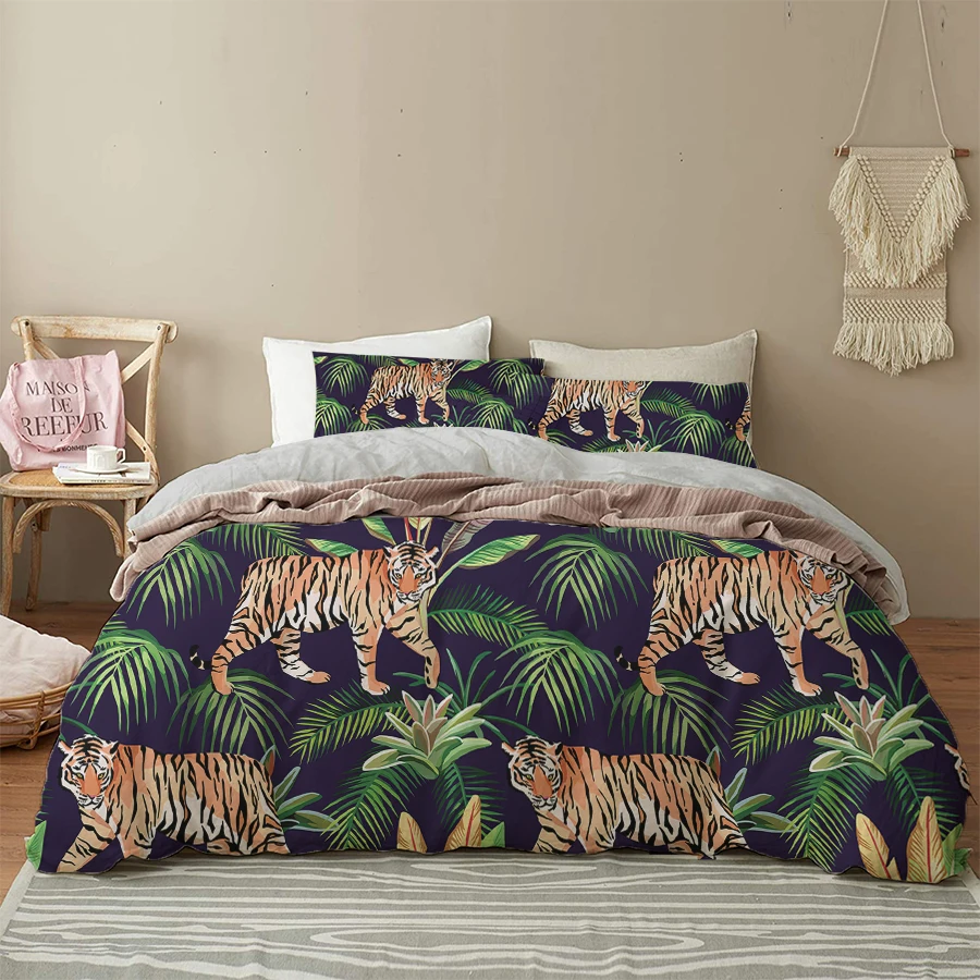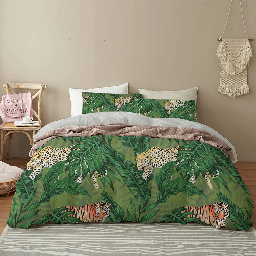 Oentyo 3D комплекты постельного белья леопардовой расцветки черный Стёганое одеяло крышка комплект Покрывало наволочки) Queen 180x210 детские брюки с тигровым анимальным принтом