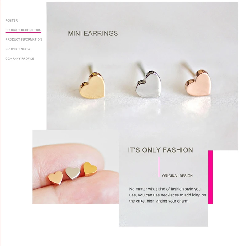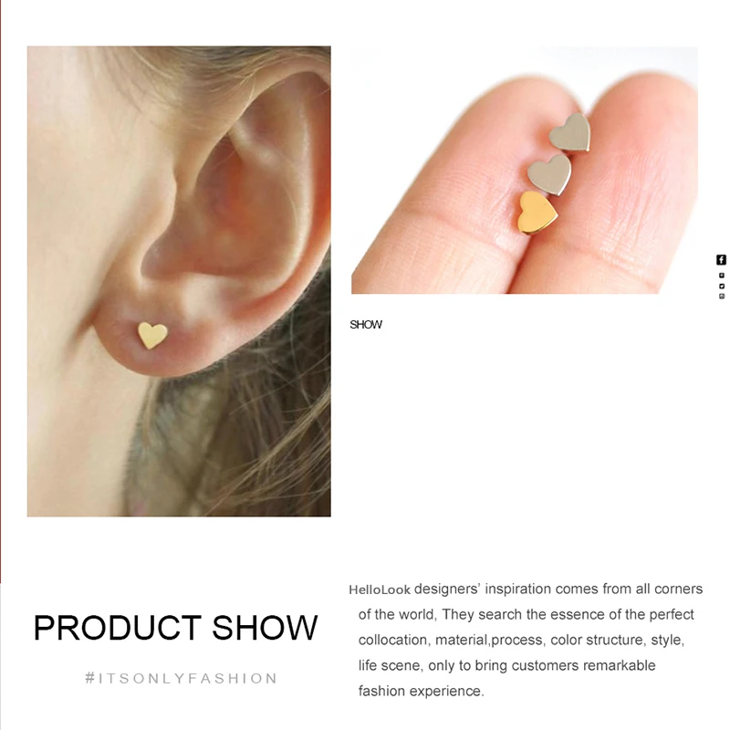 HelloLook не увядает нержавеющая сталь серьги для женщин, маленький, серьги в виде сердца, оптовая продажа крошечный в Корейском стиле Стад Серьги ювелирные изделия