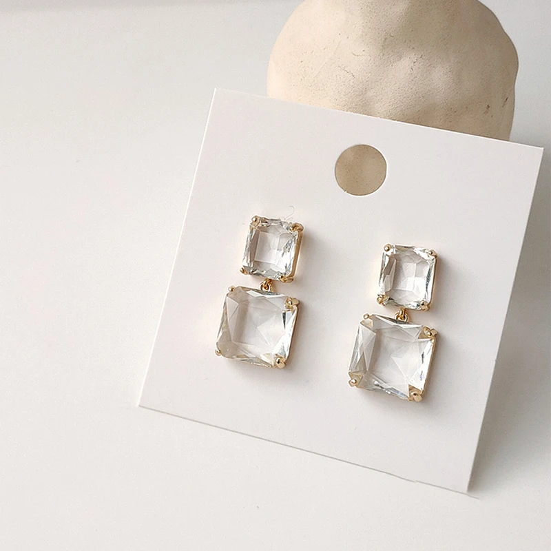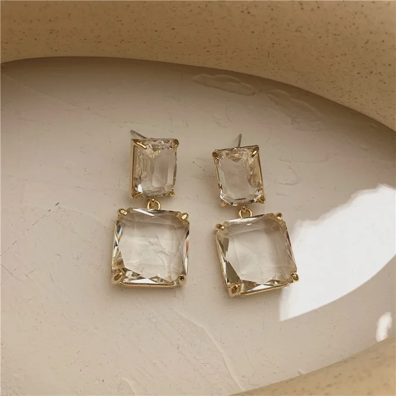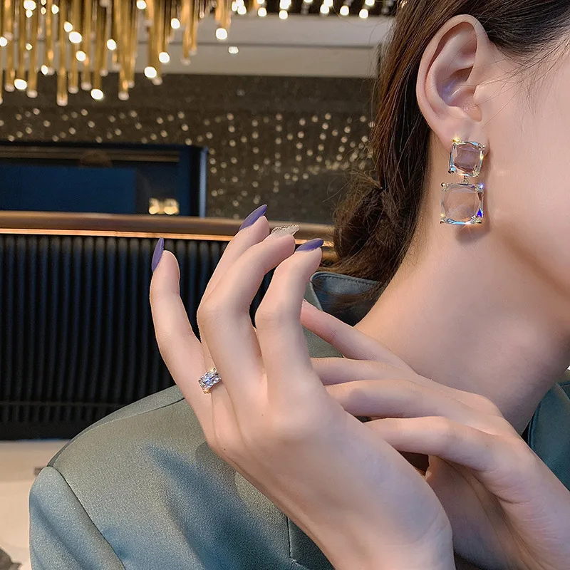 Новые стильные роскошные элегантные блестящие Квадратные прозрачные висячие серьги с кристаллами для женщин, корейские вечерние повседневные ювелирные изделия, подарки