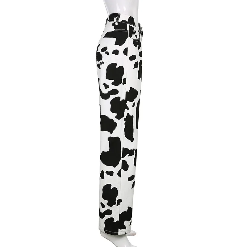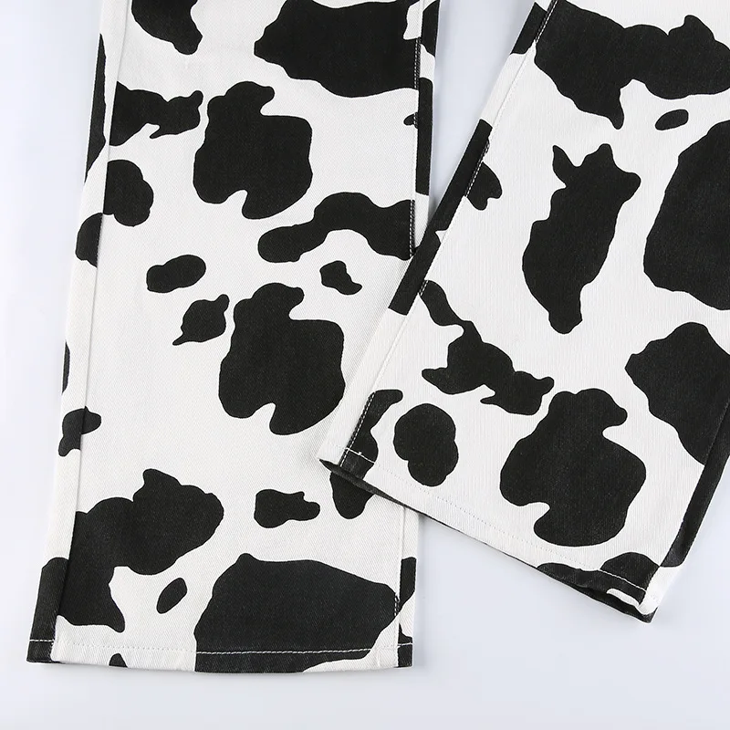 Женские прямые джинсы с коровьим принтом y2k, джинсы большого разме...