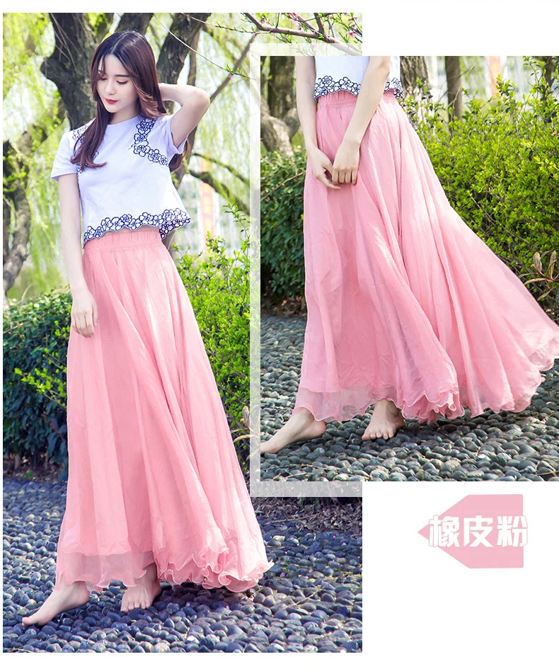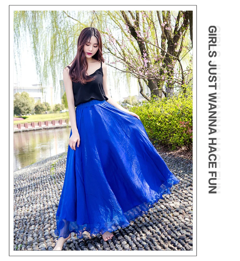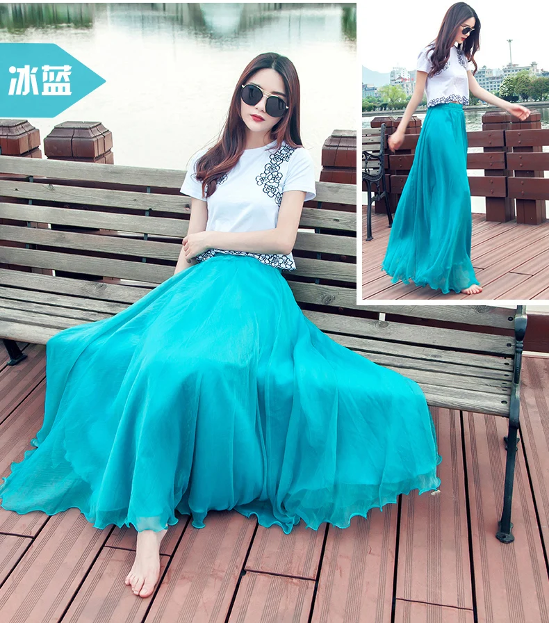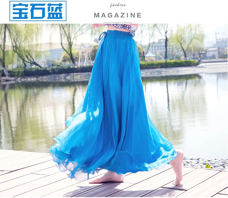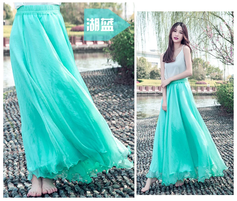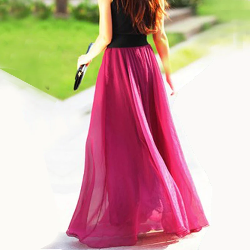 Женская длинная юбка в стиле бохо на весну и лето, пляжная юбка в пол с высокой талией, шикарная шифоновая юбка Jupe Femme, фатиновая Юбка Saia, миди Faldas