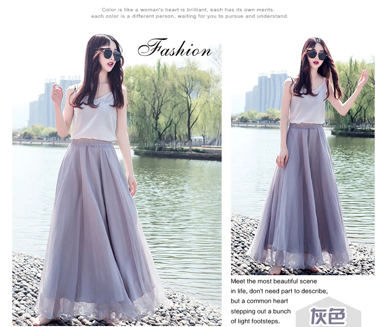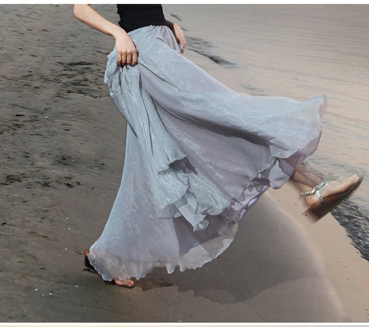 Женская длинная юбка в стиле бохо, пляжная юбка до пола с высокой талией, Шифоновая Юбка-миди из тюля, весна-лето