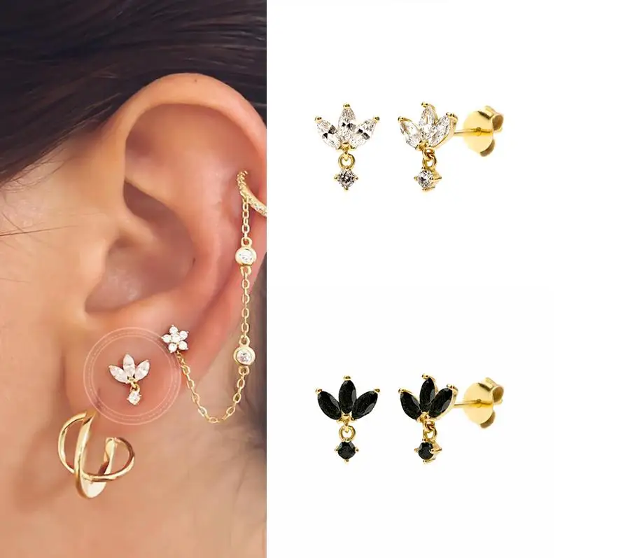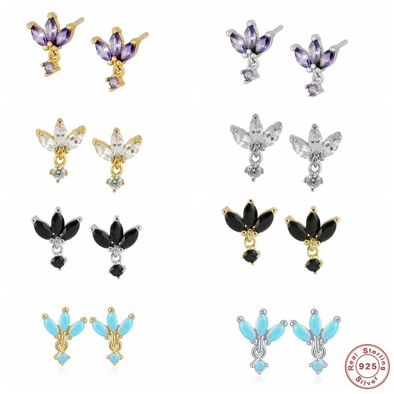 Женские серьги-гвоздики из стерлингового серебра 925 пробы с фиолетовым, черным бирюзовым цирконием, Овальный Хрустальный пирсинг Ювелирные серьги в подарок