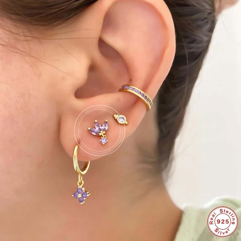 Серьги серьги с фиолетовым цирконием, предотвращающие аллергию Хрящ...