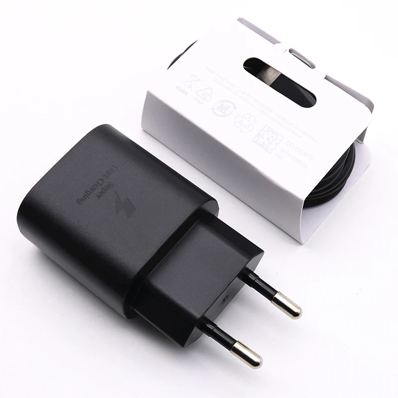 Сверхбыстрое зарядное устройство для Samsung S21 Note 20 10 A70, зарядное устройство, 25 Вт, адаптер питания европейского стандарта для Galaxy Note20, S20, A90, A80, S10, кабель Type-C