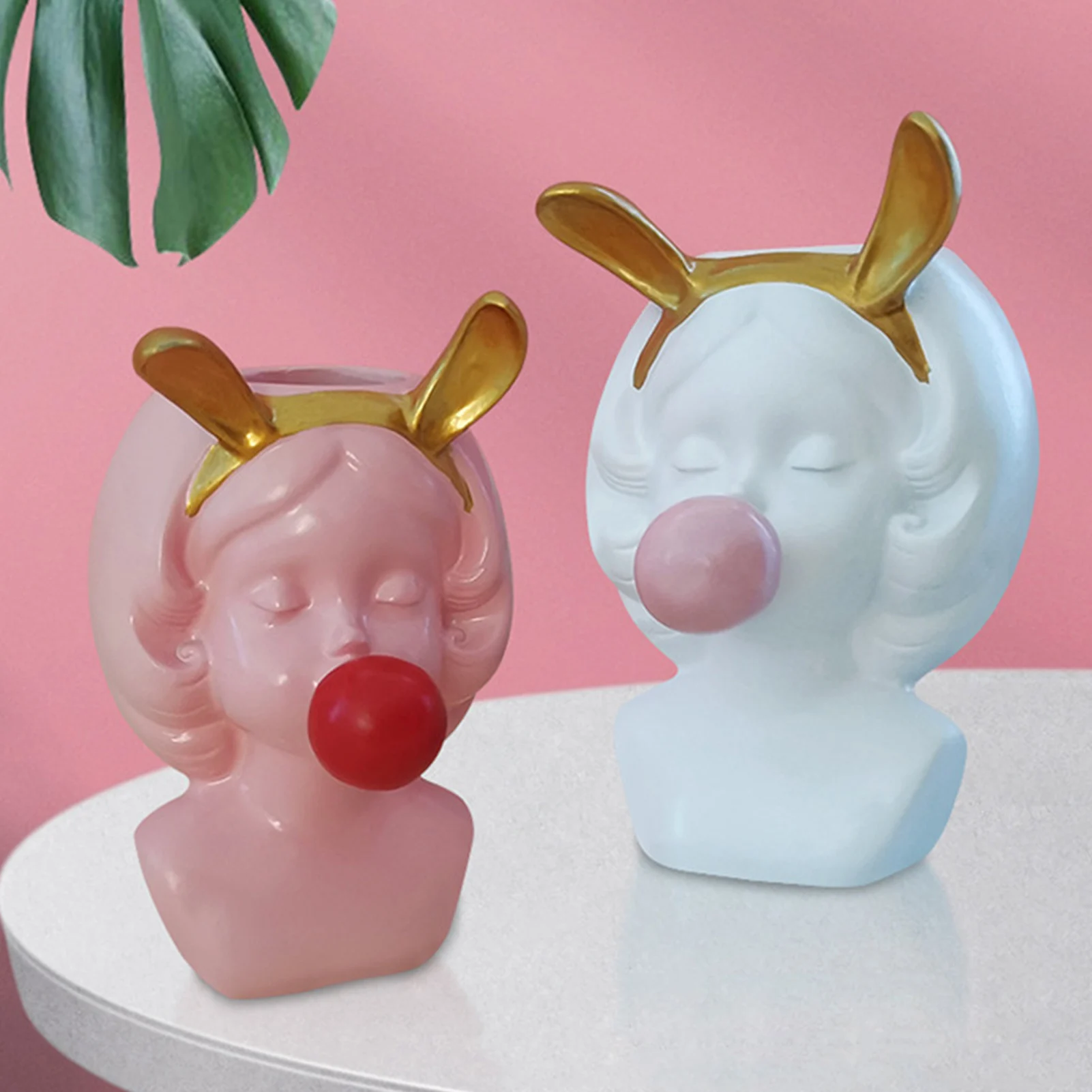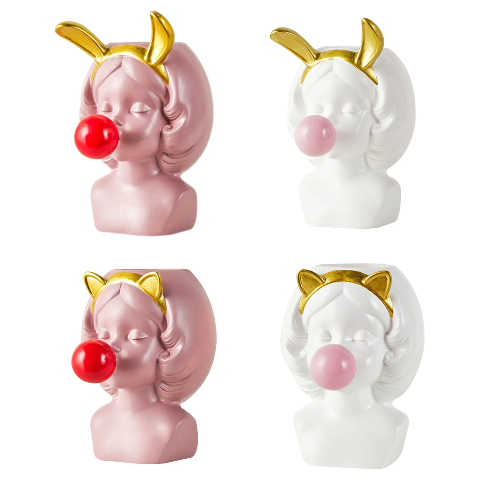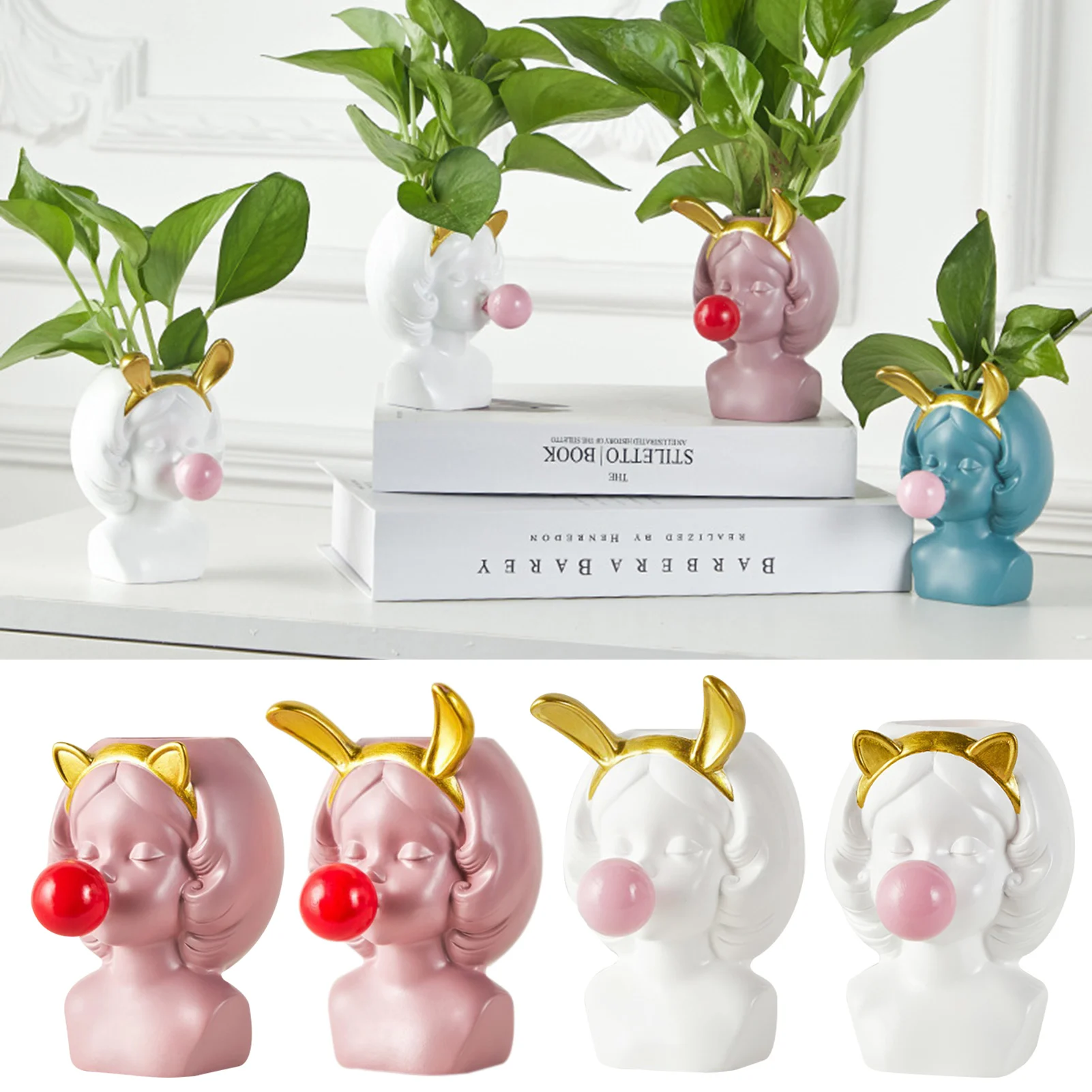 Nordic Стиль смолы ваза для милых девочек жевательной резинки фигурка декоративный горшок для растений современный дом декоративная ручка держатель