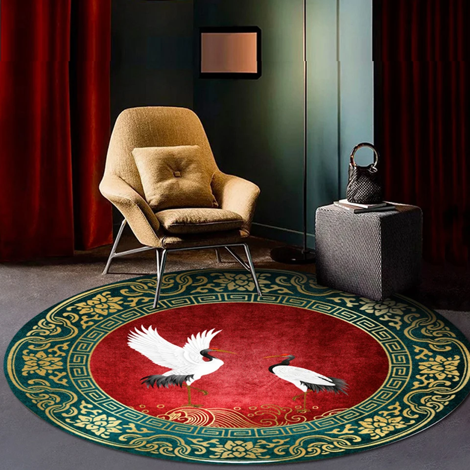 Tappeti sogjorno Camera da letto Blu Rosso Uccello Fiore Foglia Tappeto rotondo in stile cinese per tavolino Sedia Tappetino Bagno Tappetino домашний декор