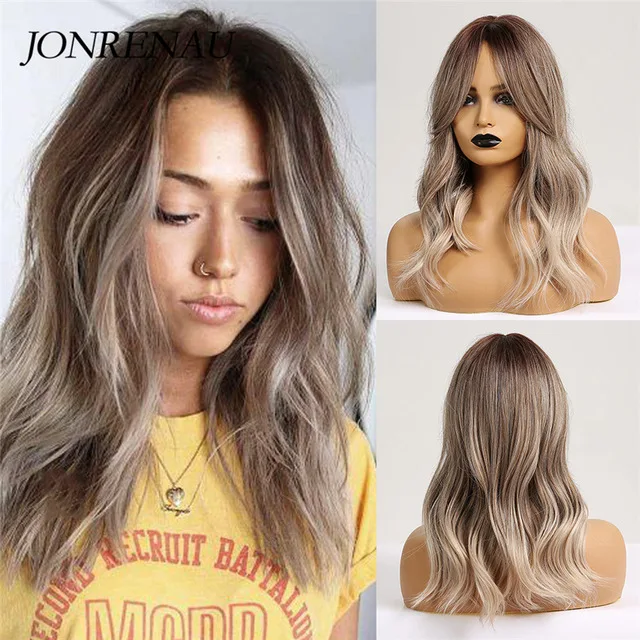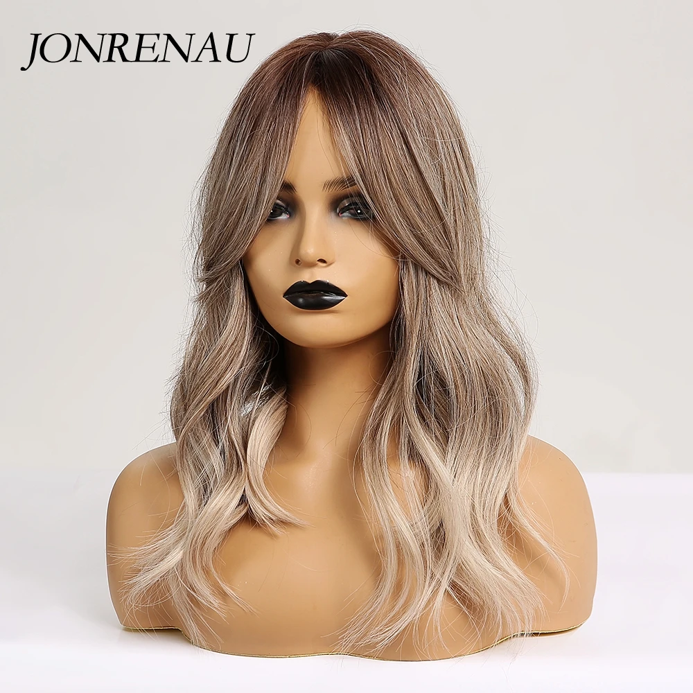 Парик JONRENAU, длинные натуральные волны, темные волосы, пепельно-каштановые, синтетические, для ежедневного использования, для белых и черных женщин