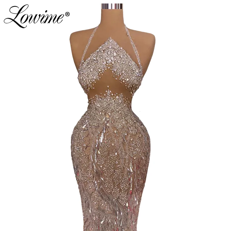 Горячая сексуальная прозрачная обувь с украшением в виде кристаллов Платья для вечеринок Дубай длинное платье для выпускного вечера Vestido De Fiesta с лямкой на шее Африканское вечернее платье 2021 халаты