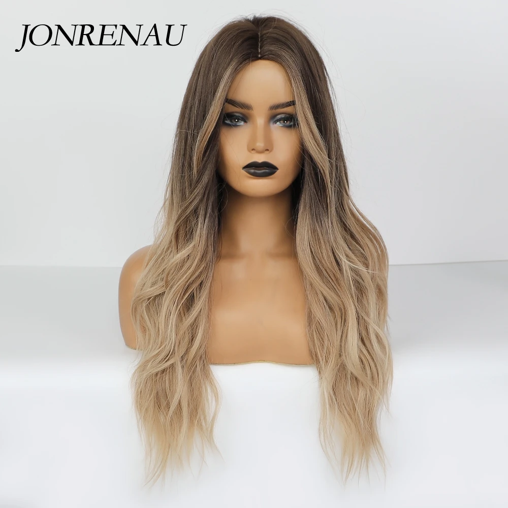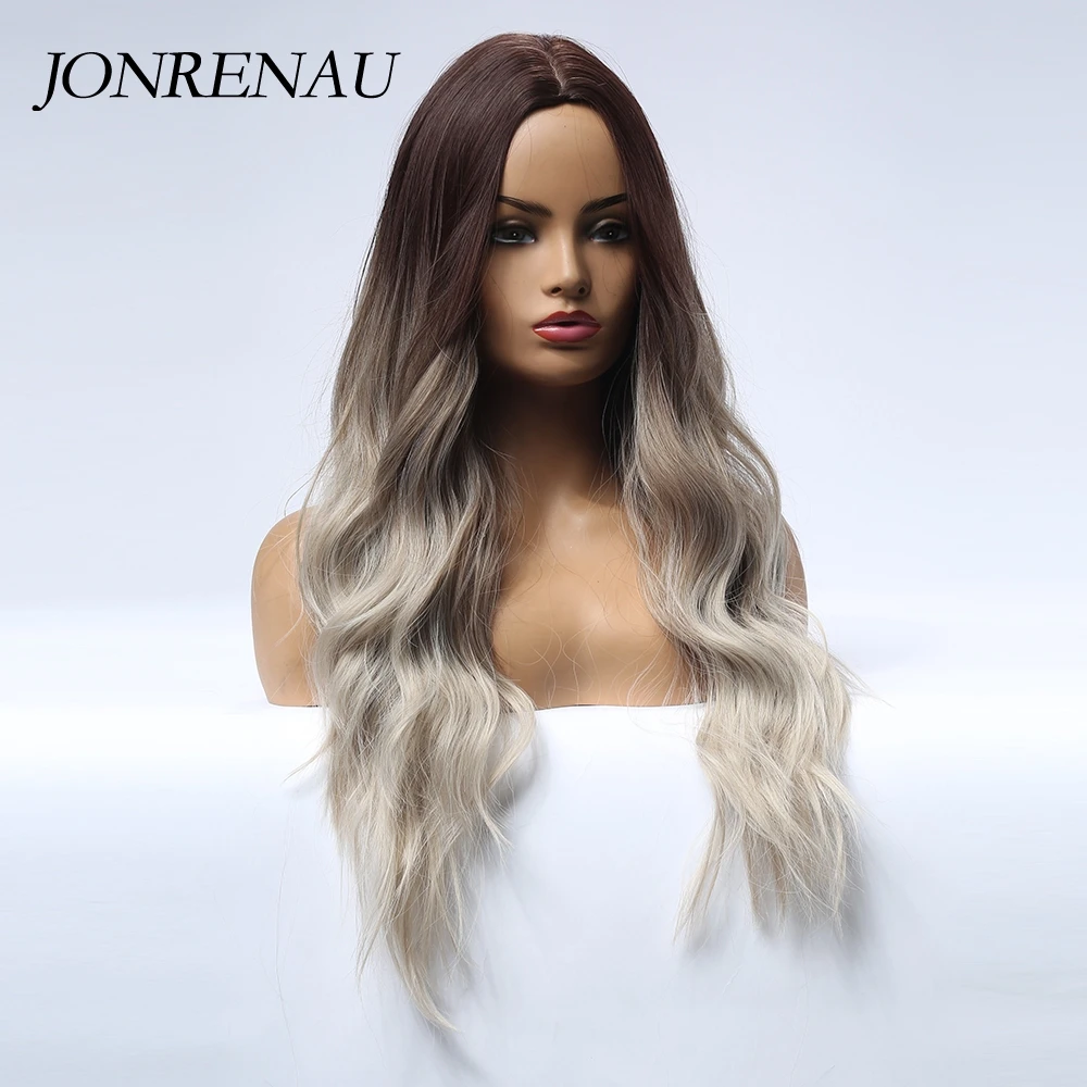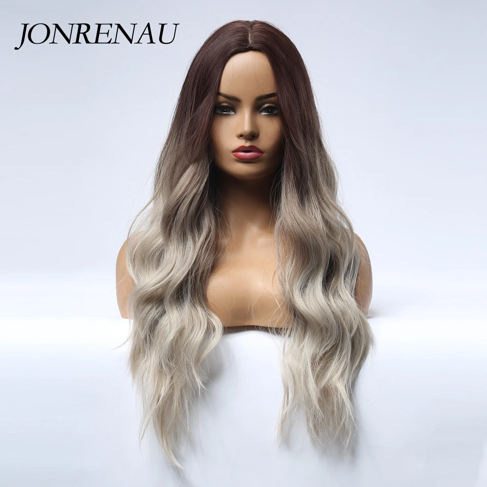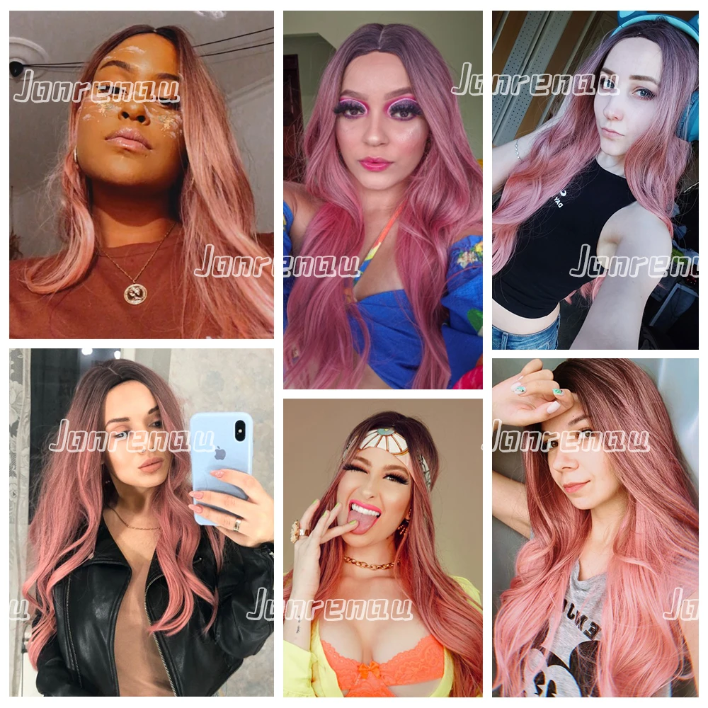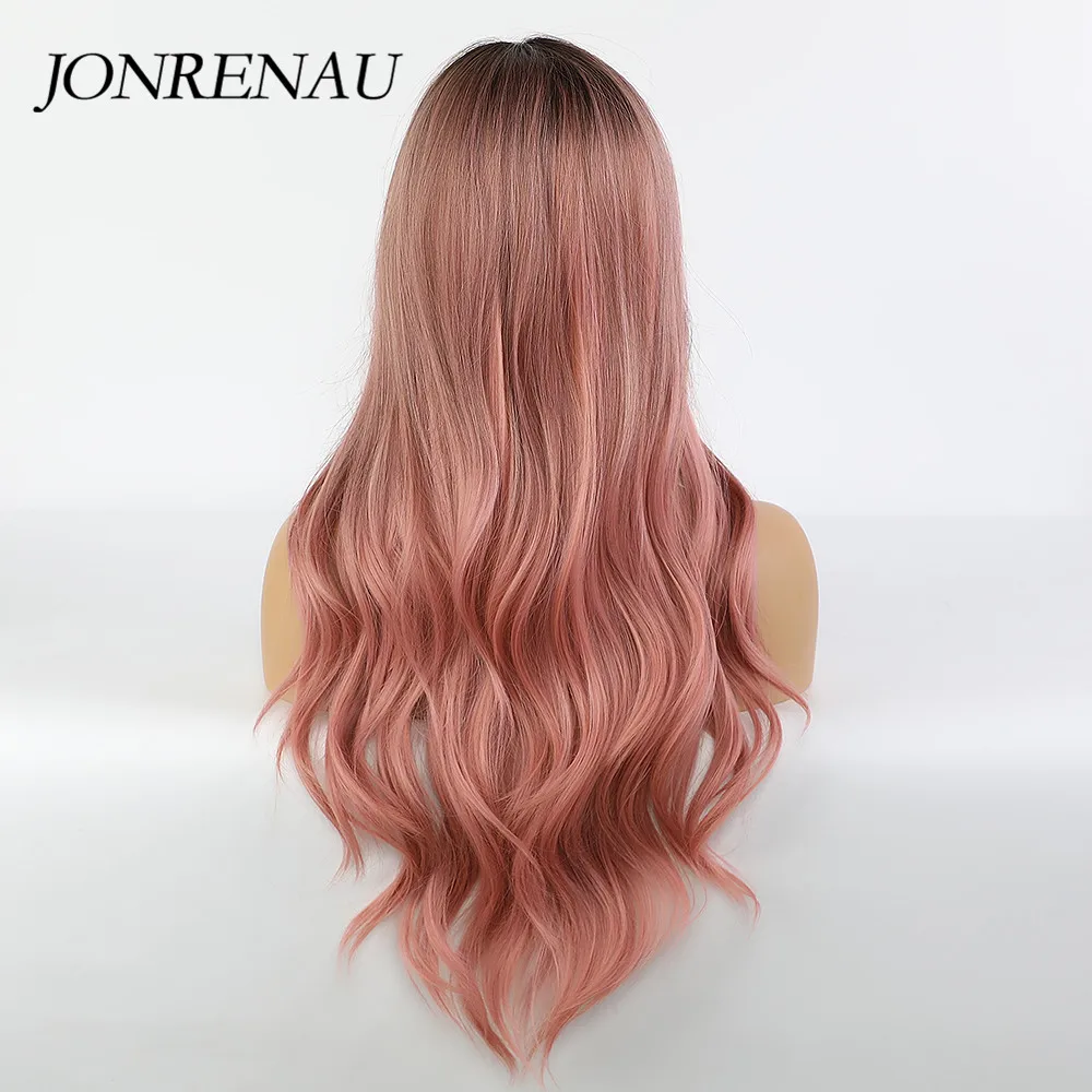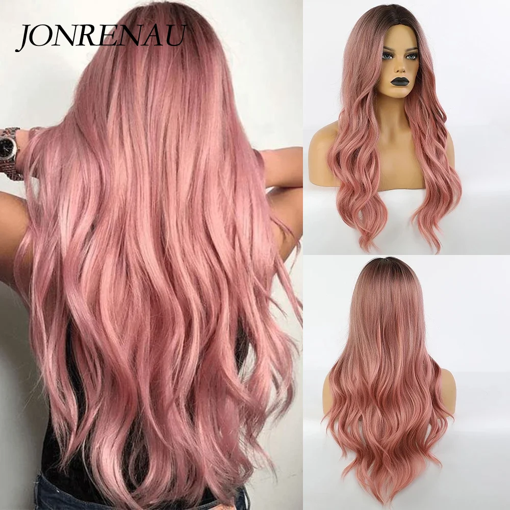 Парик JONRENAU для косплея чернокожих и белых женщин, Синтетические длинные волнистые темные корни Омбре, розовые волосы для косплея, цветные волосы из волокна, высокая температура