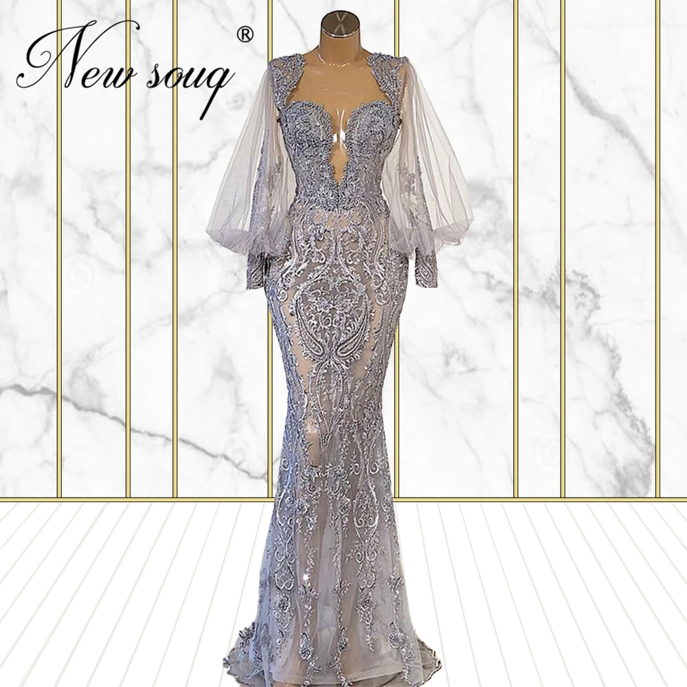 Элегантные вечерние платья с бусинами и пышными рукавами, индивидуальный дизайн, платье для выпускного вечера, 2021, платья из Саудовской Аравии с красной ковровой дорожкой, вечерние платья