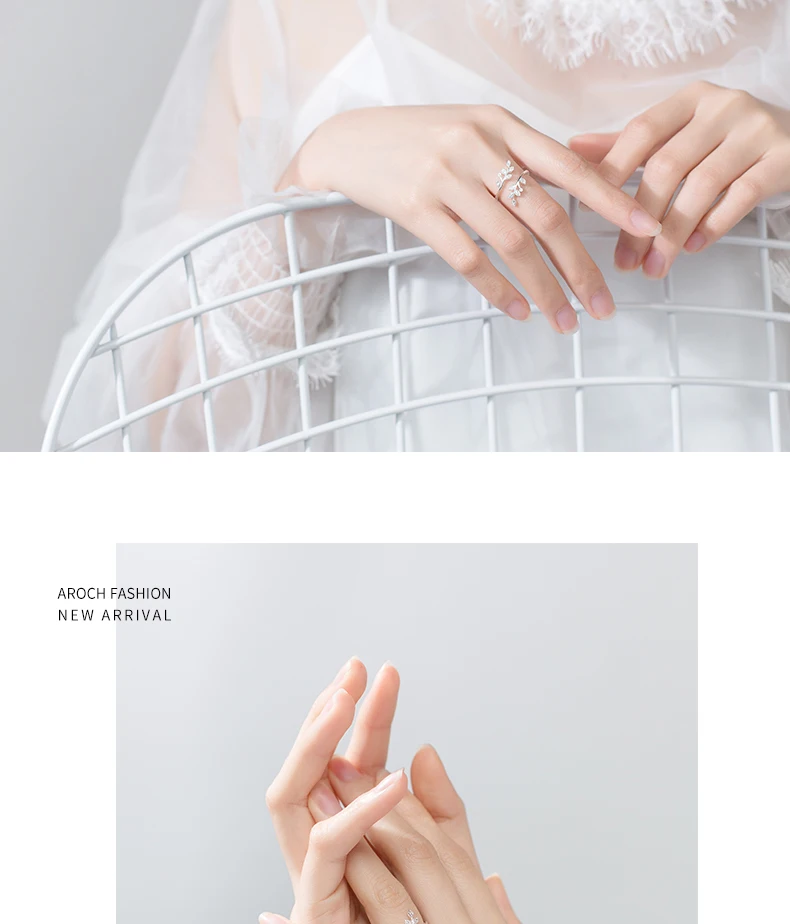 Женское кольцо с листьями и кристаллами, регулируемое кольцо с сере...