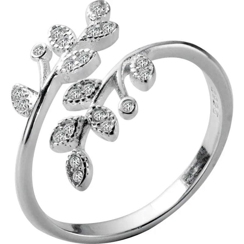 Женское кольцо с листьями и кристаллами, из серебра 925 пробы