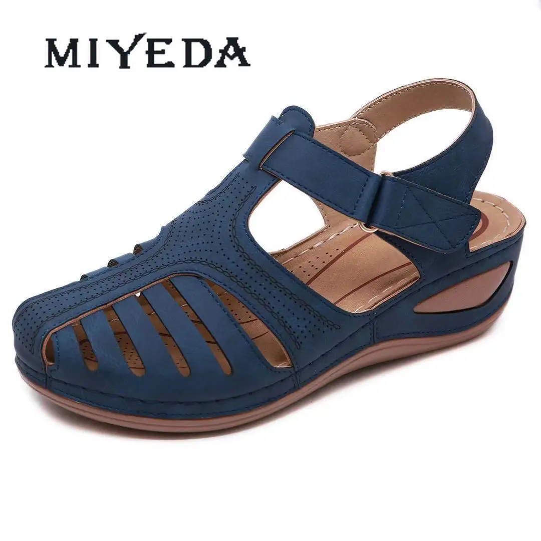 MIYEDA; Босоножки на танкетке; Обувь с закрытым носком; Повседневные, на среднем каблуке, с перекрестной шнуровкой, с закрытой пяткой, Туфли летние женские туфли-лодочки; Сделанные вручную Женская дышащая обувь