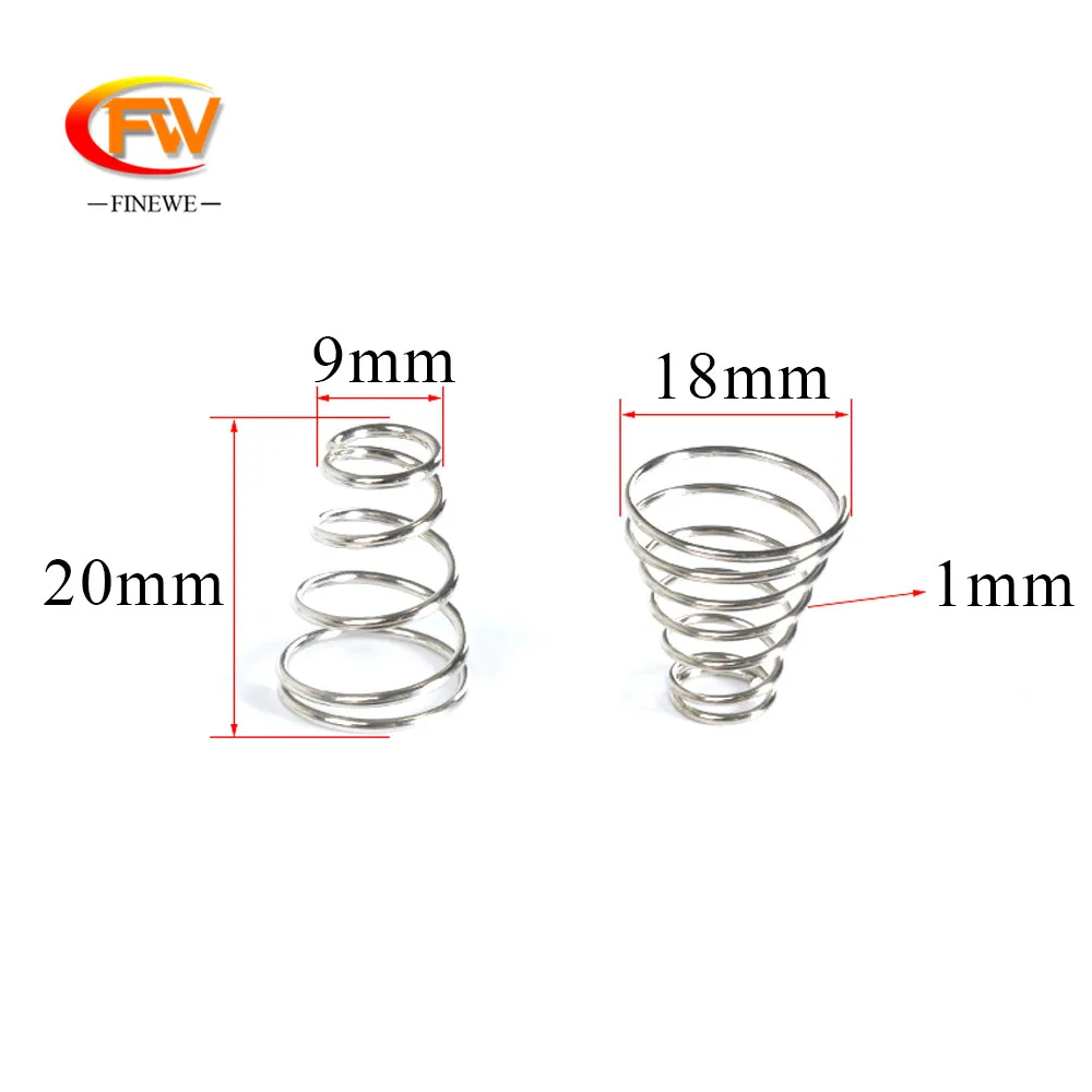 Коническая пружинная башня FINEWE 10 шт.лот, пружина 1,0 мм, провод с небольшим контактом давления, компрессионная пружина аккумулятора