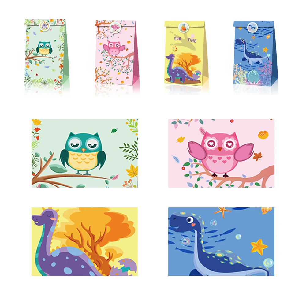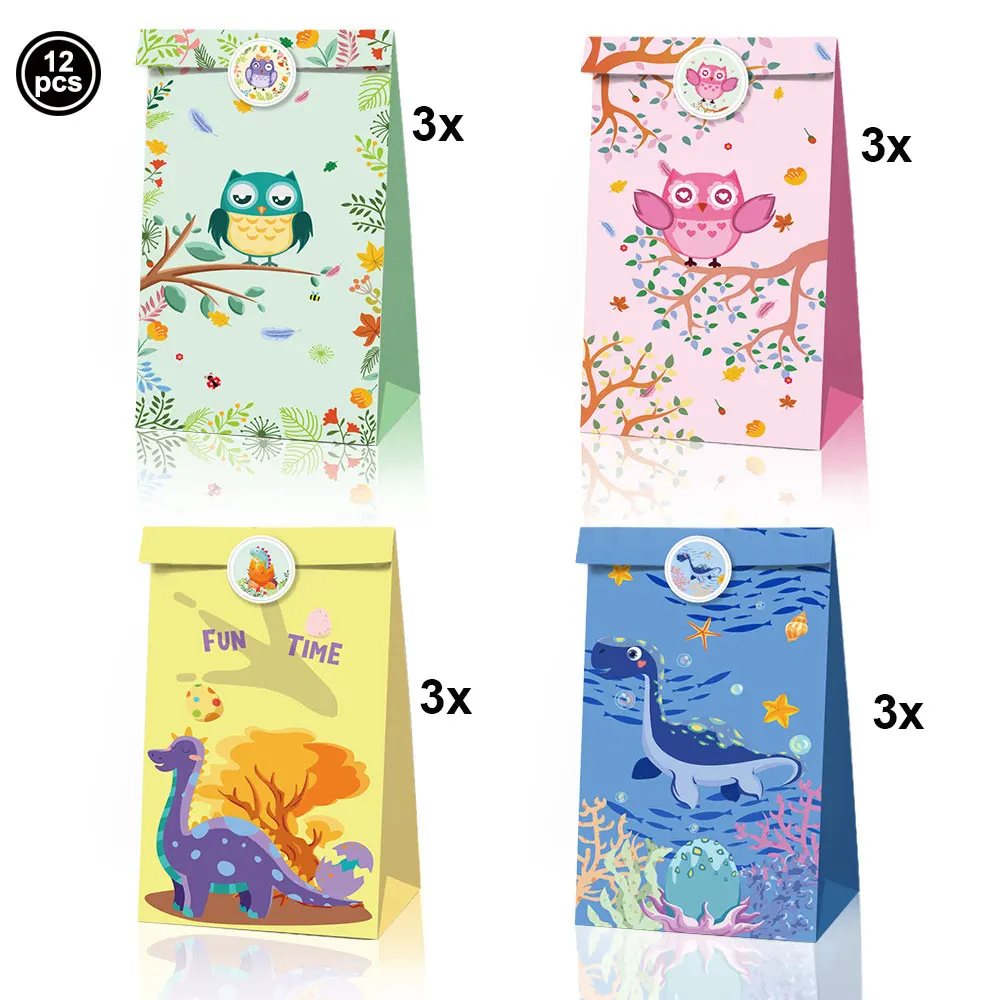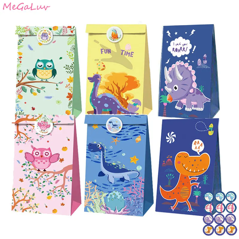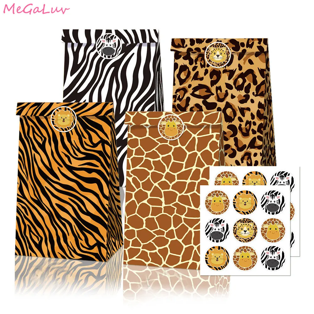 12 шт. в упаковке, Бумага Сумки Подарочные для конфет с Стикеры с изображением животных из джунглей вечерние Coockie упаковка Коробки душа ребенка Дети День рождения вечерние поставки