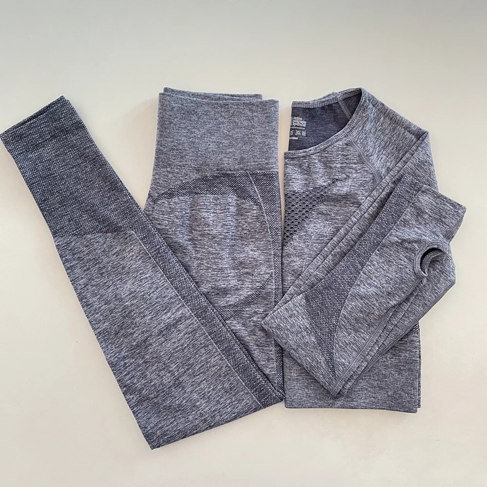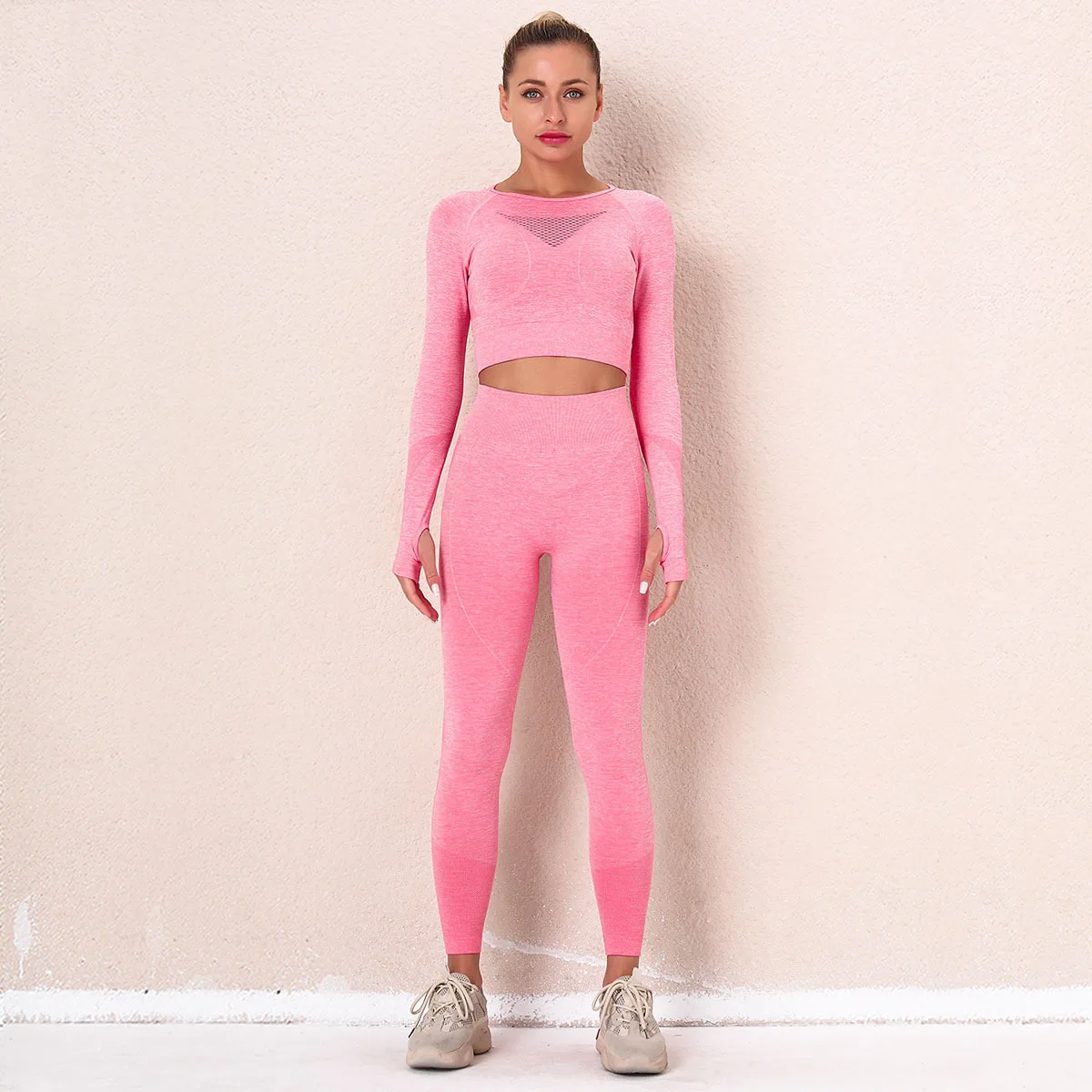 Feature:Gym Seamless Workout Leggings Long Sleeve Tracksuit