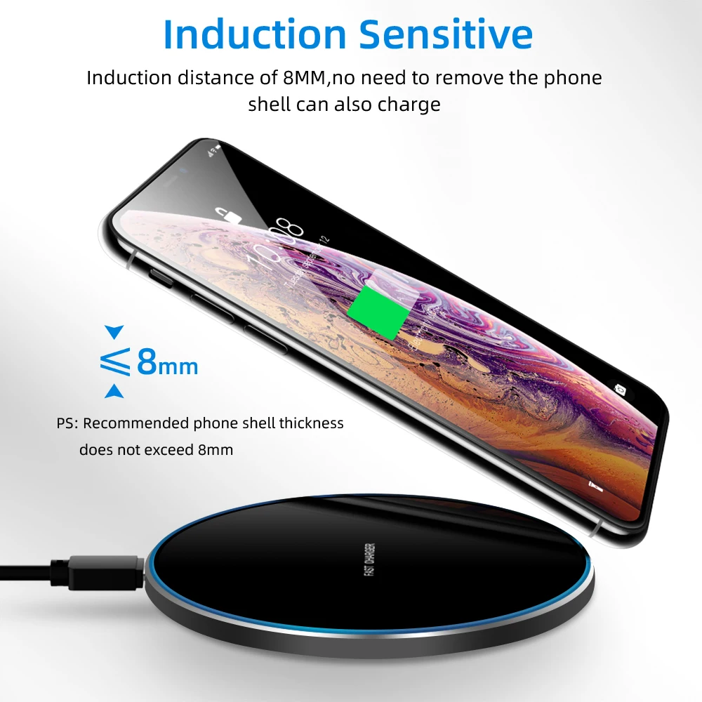Быстрое беспроводное зарядное устройство FDGAO 10 Вт для iPhone 12 Pro 11 8 X XS XR Samsung S21 S20 Huawei P40 Pro Xiaomi Mi 11 10 Вт Qi, зарядное устройство для телефона