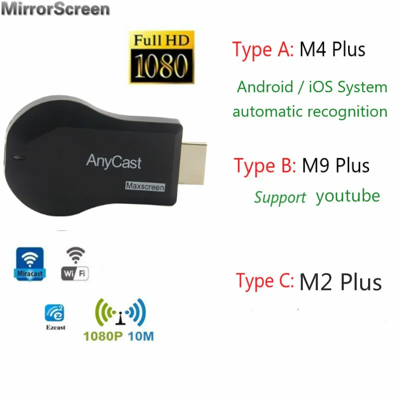 Беспроводной Wi-Fi приемник Anycast M2M4M9 Plus, ТВ-адаптер, Android 1080P DLNA Airplay Miracast TV для YouTube