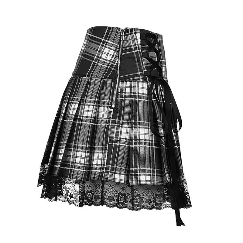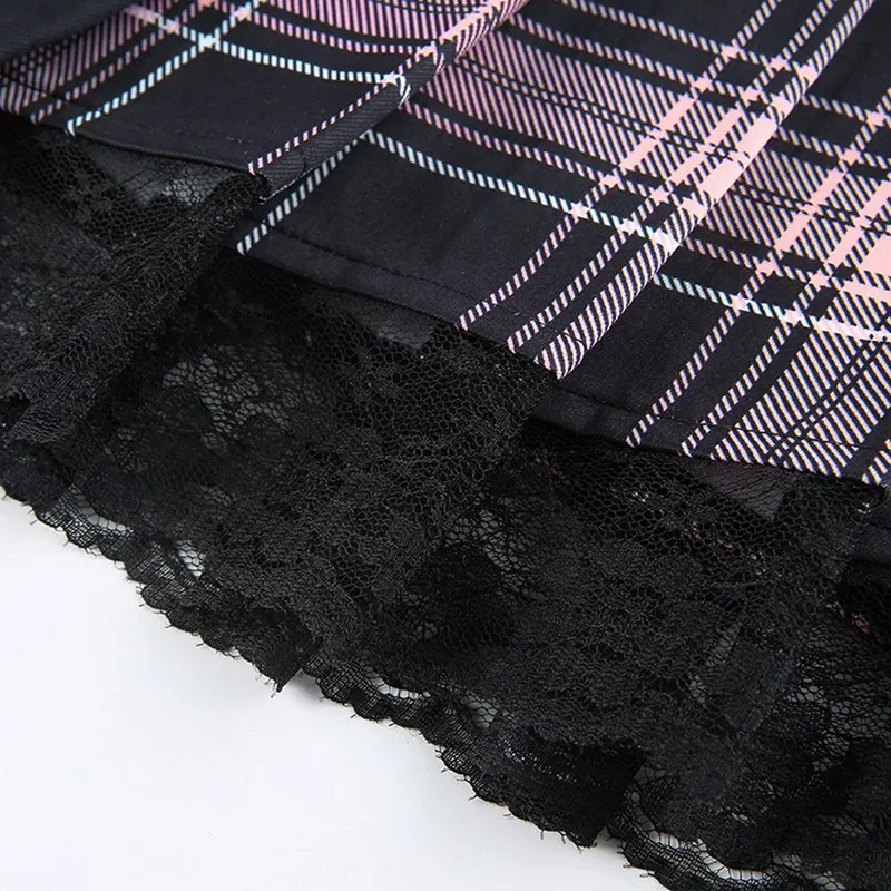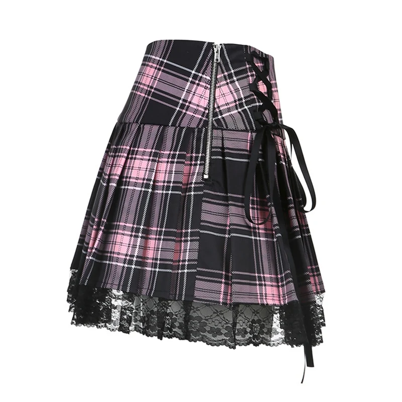 Женская юбка на шнуровке ALLUKASA Y2K, розовая клетчатая плиссированная юбка в полоску с кружевной отделкой в стиле панк, темная академия, одежда для девушек