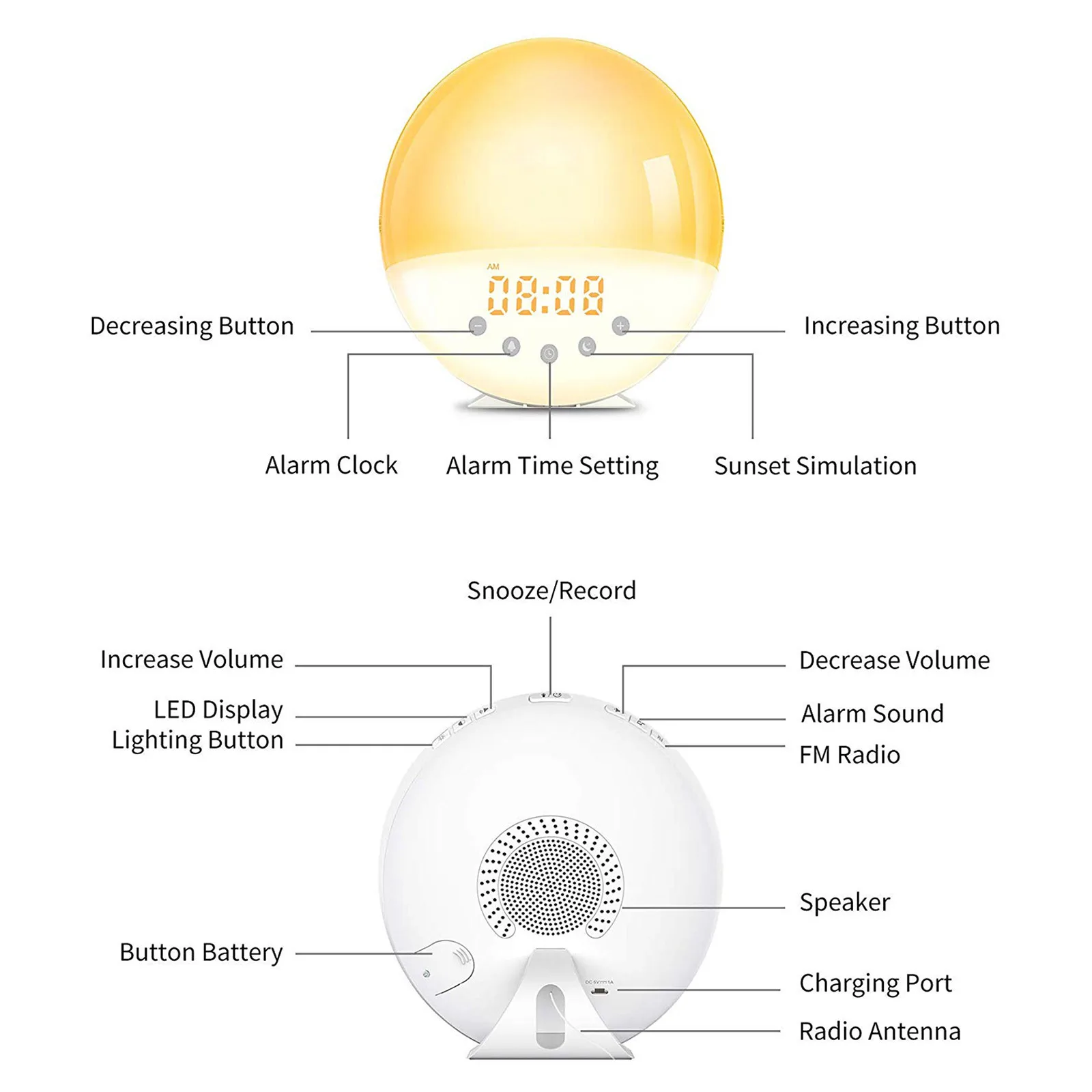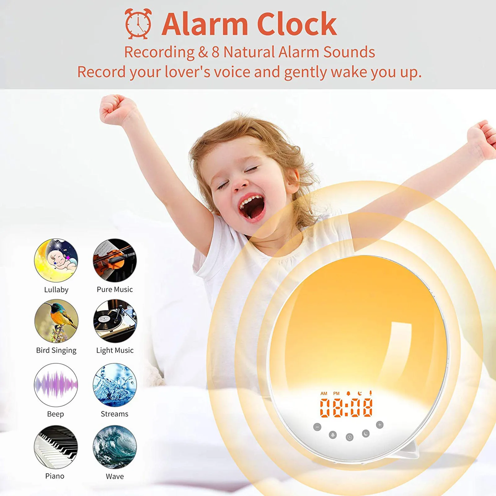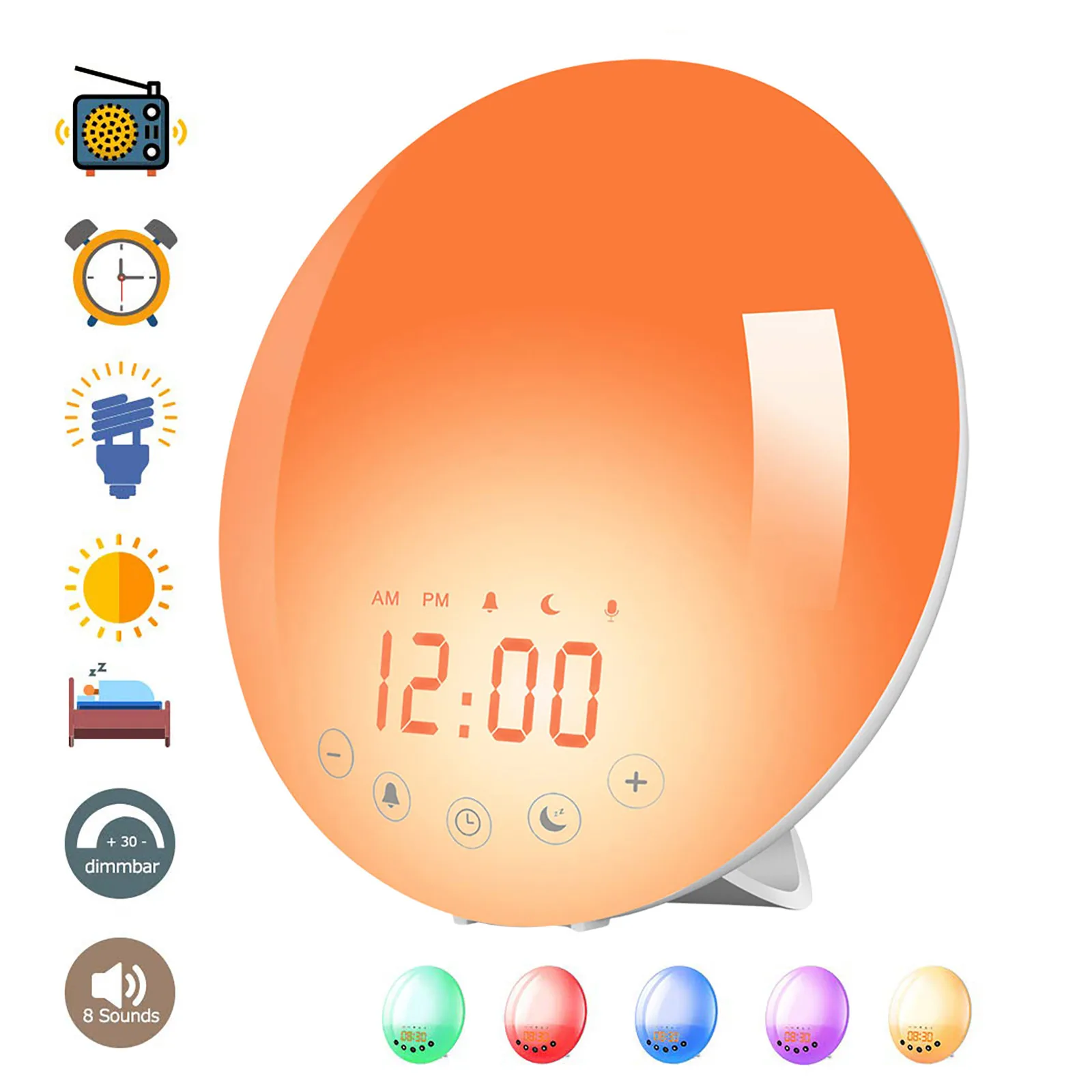 Светильник с часами TITIROBA, цифровые часы, будильник, ночник, естественный, красочный свет восхода, звуки природы, FM радио