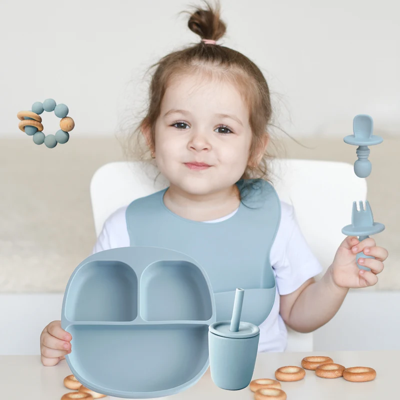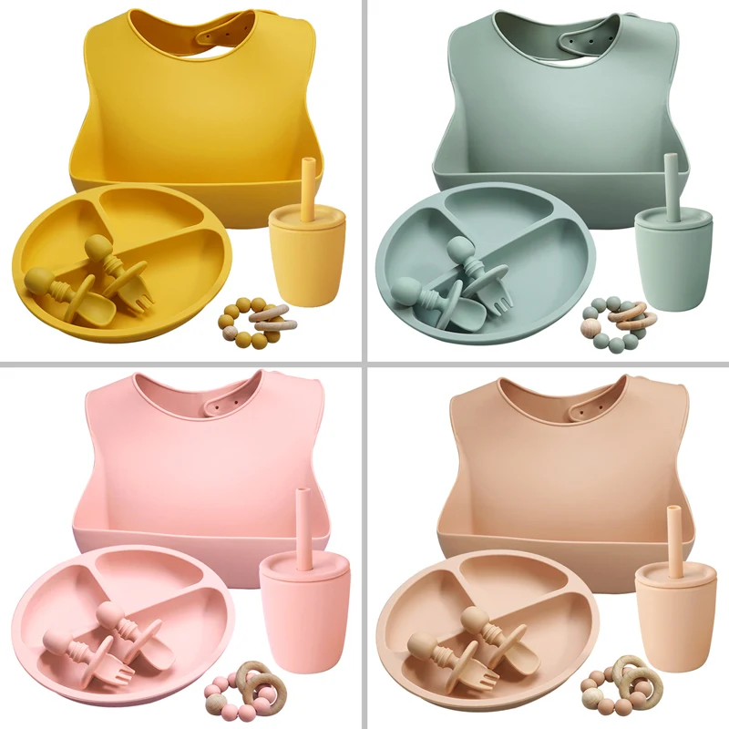 Аксессуары для новорожденных на заказ, детская посуда, водонепроницаемые детские нагрудники, тарелки для кормления, тренировочная чашка, без БФА