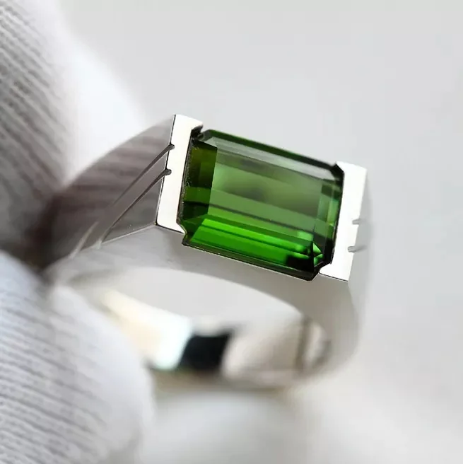 Мужская бижутерия из чистого серебра 925 пробы, кольцо с натуральным изумрудом карата