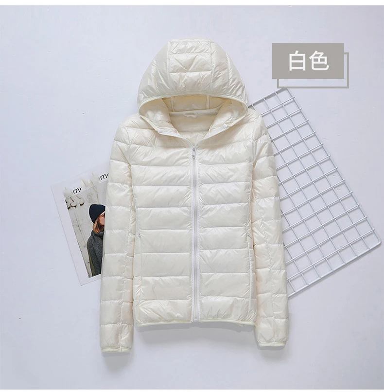 Ультра-светильник размера плюс тонкая пуховая куртка для женщин 2021 осень-зима с короткими рукавами и капюшоном теплые Белое пуховое пальто Верхняя одежда для женщин, Портативный