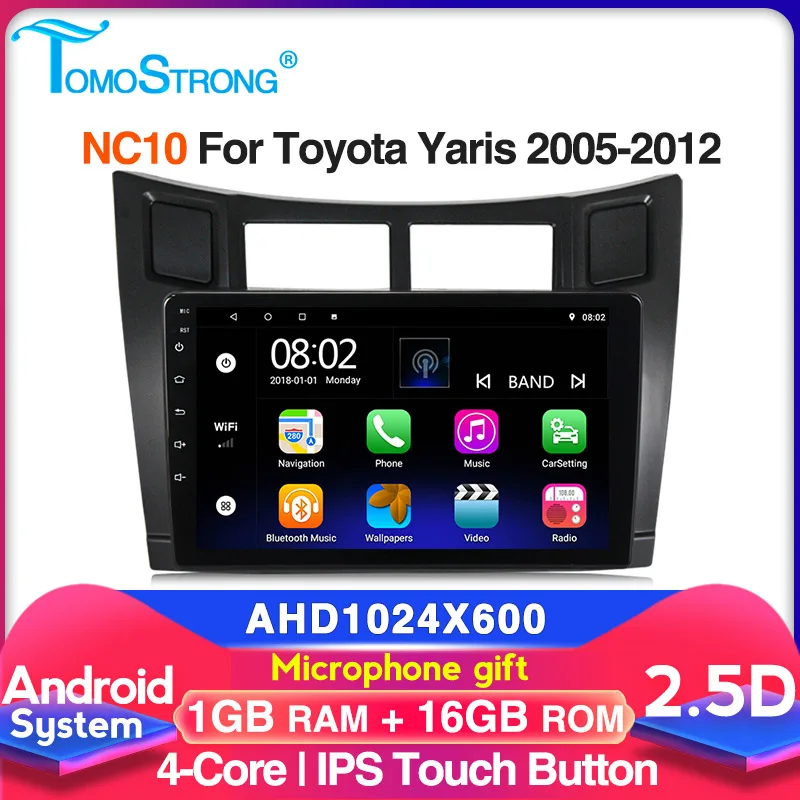 Автомагнитола 2DIN Android для Toyota Yaris 2005-2012, автомобильный мультимедийный видеоплеер с DVD-плеером, GPS-навигацией, Bluetooth, Авторадио с Wi-Fi, SWC, FM