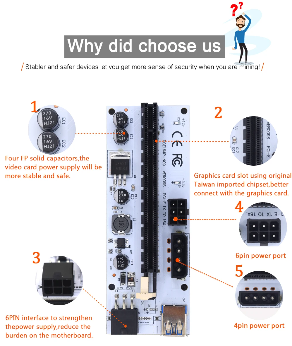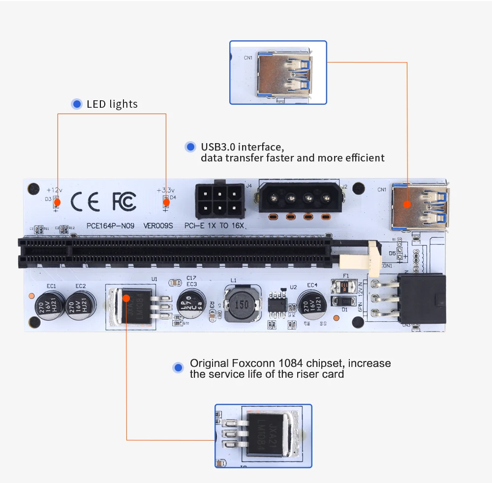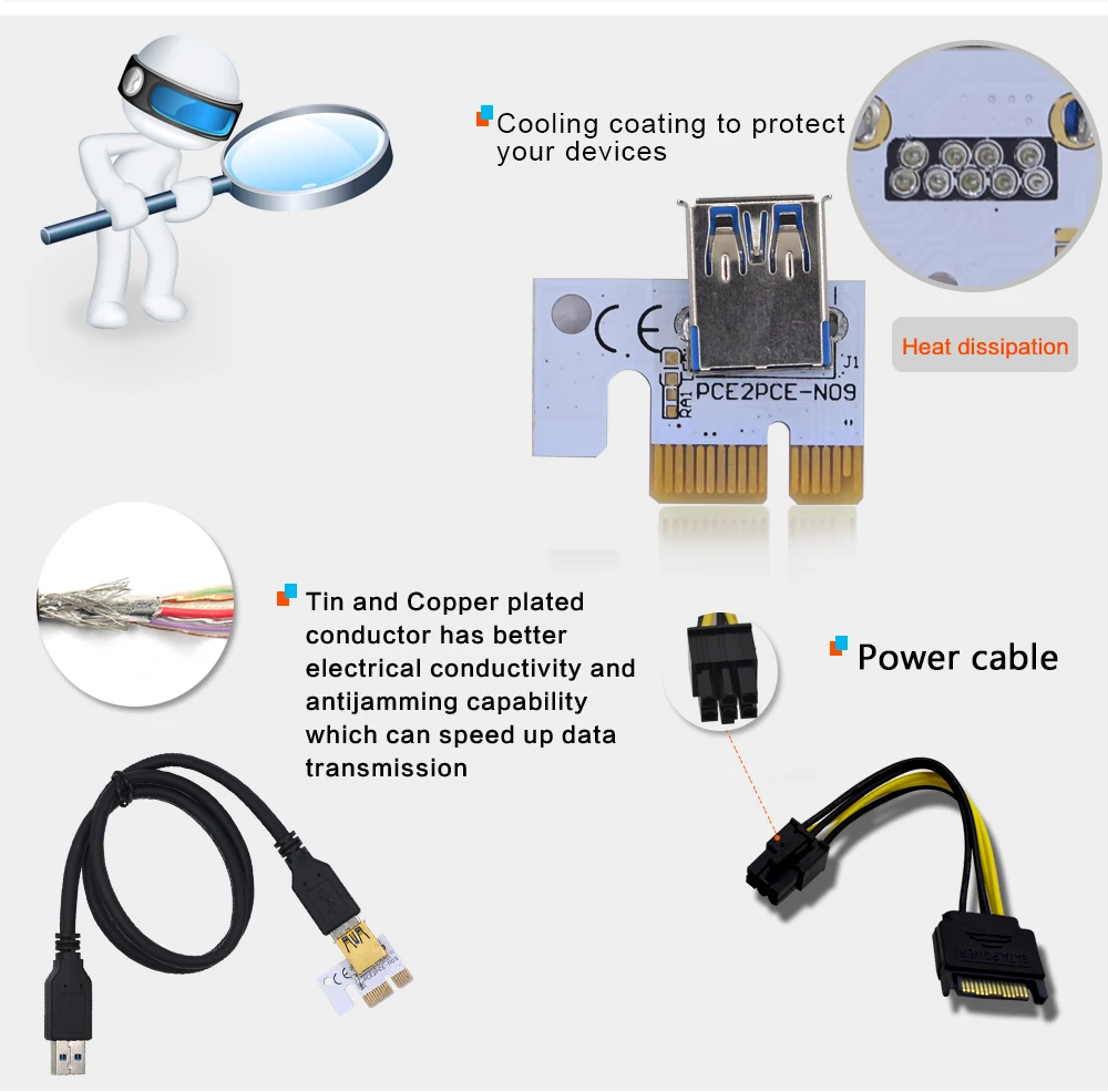 COVYIV Newest 009s PCI E Extender Riser Card PCI-E/PCIE USB 3.0 to 6pin Adapter Cable Mining Riser For Video Card GPU