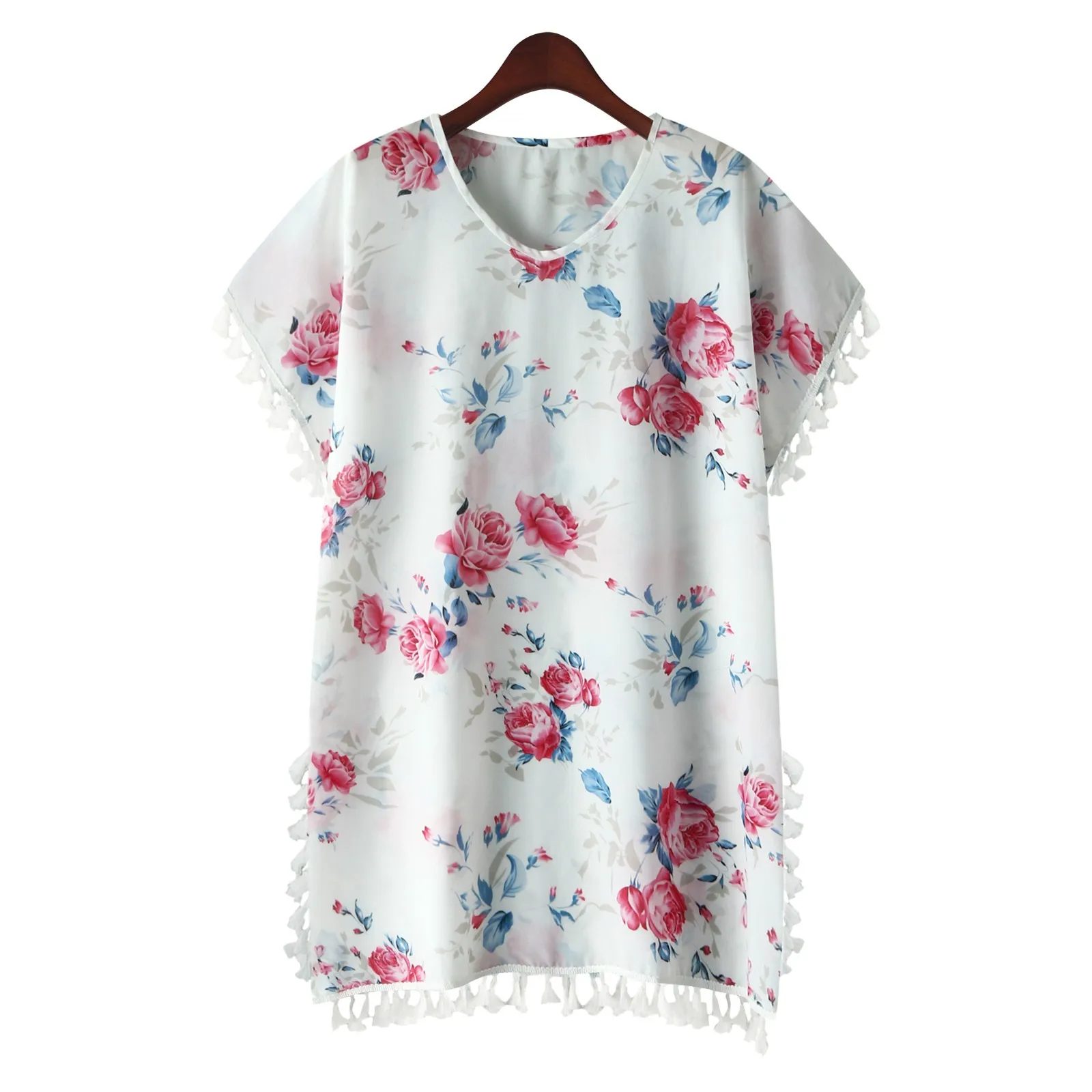 Женский купальник, платье с отделкой, кафтан, шифоновый купальник с кисточками, Пляжное платье, свободное бикини, накидка, топы, купальный костюм, пикантное парео