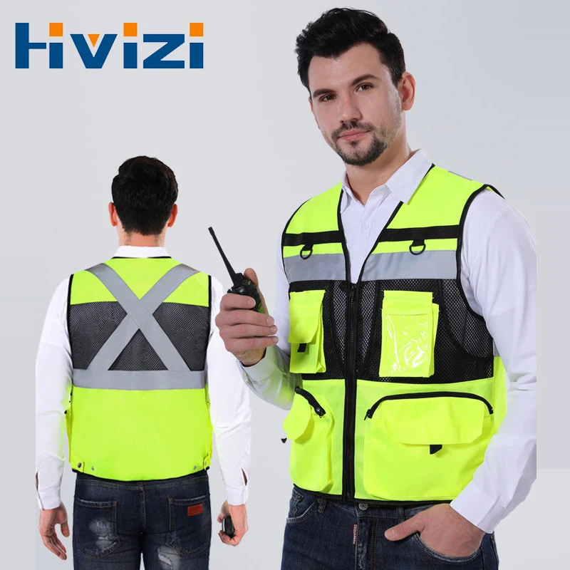 Защитный жилет, высокая видимость, стандарты ANSIISEA, карманы и сетчатая подкладка, светоотражающий жилет для мужчин и женщин