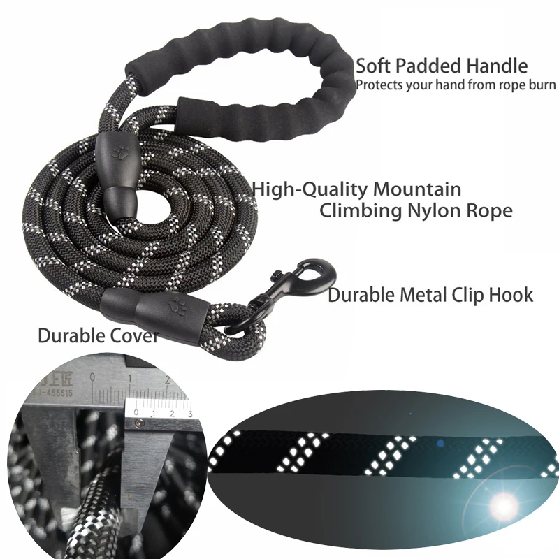 Нейлоновая Тяговая веревка для больших собак, прочная Светоотражающая Тяговая веревка для дрессировки, ошейник для собаки среднего размера