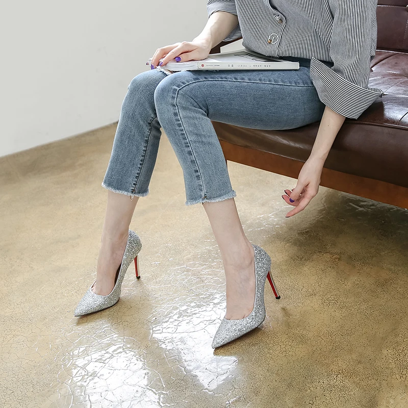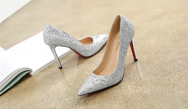 Модные пикантные блестящие женские туфли-лодочки с острым носком туфли на высоком каблуке-шпильке 8 см/10 см; Обувь для прогулок свадебные туфли на каблуке для женщин