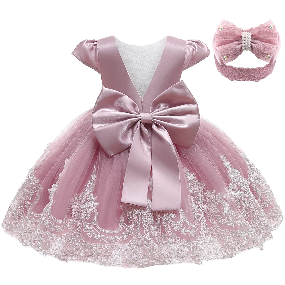 Детское элегантное платье, костюм для малышей, Новое Кружевное платье для первого дня рождения для девочек, платье принцессы с вышивкой и цветами