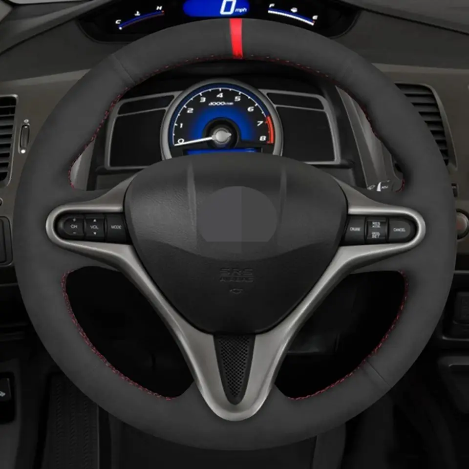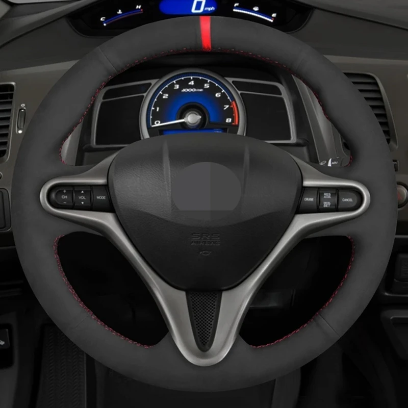 Сшитые вручную черные замшевые аксессуары для Honda Civic 8 чехол рулевого колеса автомобиля 2006 2007-2008 2010 (3-спицевые), 2011