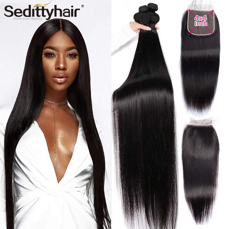 Sedittyhair 28, 30 дюймов, перуанские прямые искусственные волосы с застежкой, 4x4, недорогие фронтальные волосы с 3 4 прядями, Remy