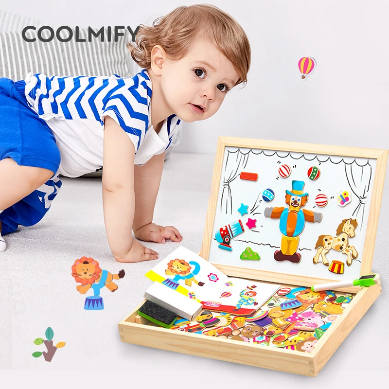 Деревянная магнитная головоломка, Детская 3D головоломка, коробка, фигурка животных, цирковая доска для рисования, Обучающие игрушки для детей