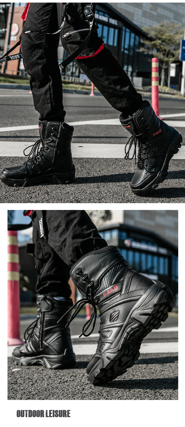 Зимние ботинки, Водонепроницаемые кожаные кроссовки, супертеплые мужские армейские ботильоны, уличные мужские походные ботинки, Рабочая обувь