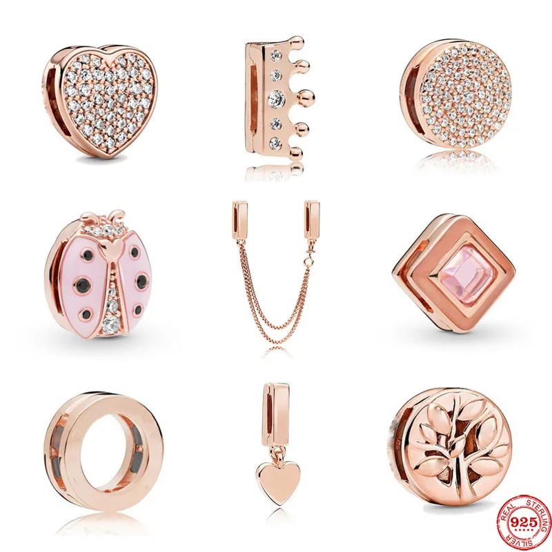 Новинка 2022, серебро 925 пробы, бусины-клипсы с отражениями, сердц...