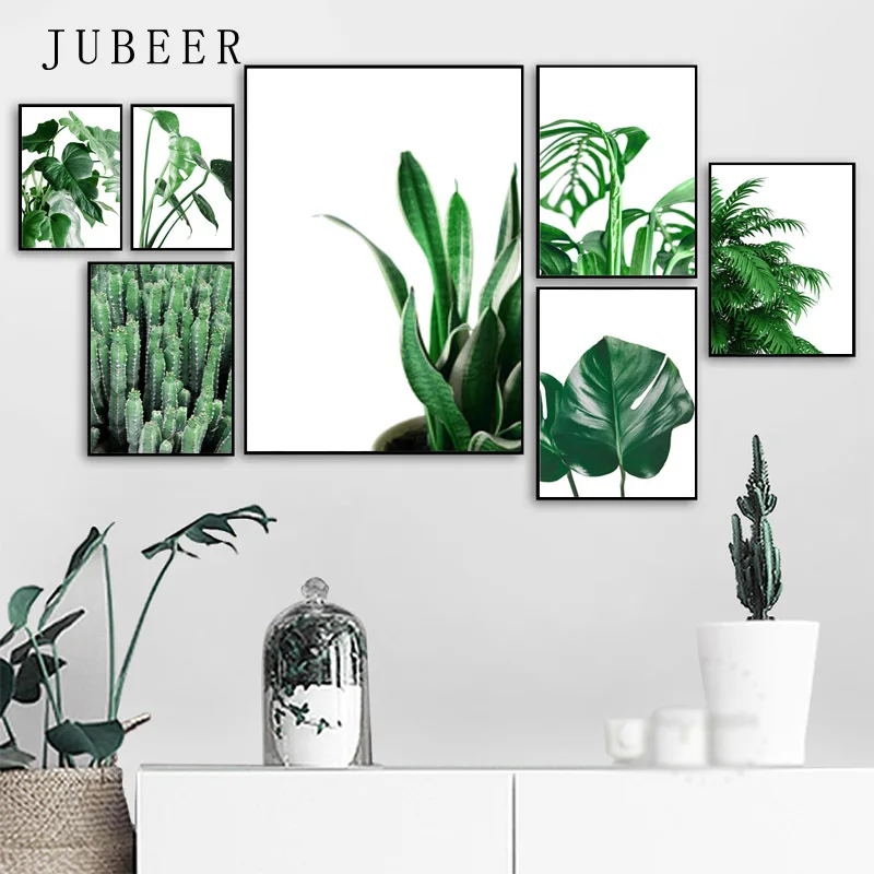 Monstera кактус Настенная живопись на холсте зеленые тропические растения листья скандинавские плакаты и принты настенные картинки для гостиной