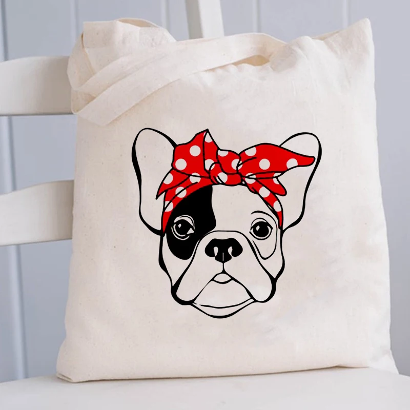 Harajuku Tumblr, женская сумка для покупок с изображением французского бульдога, тканевые сумки-тоут, женские эко-многоразовые сумки через плечо для покупок