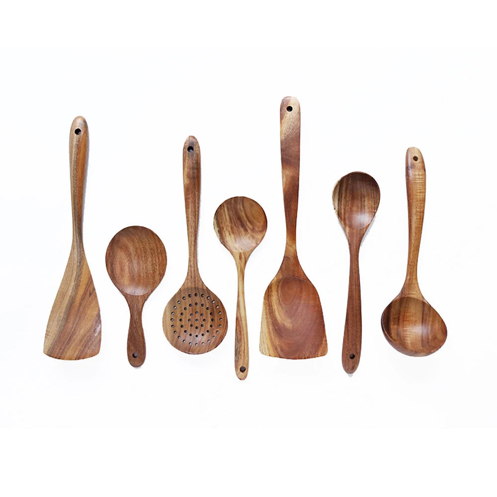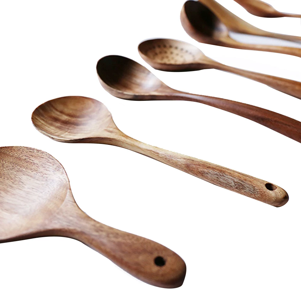 7 шт.компл. натурального дерева столовые ложки столовый набор для кухни набор инструментов чайная ложка для риса, супа, Пособия по кулинарии деревянные столовые сервизы