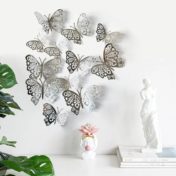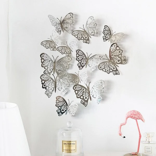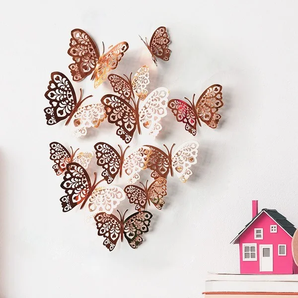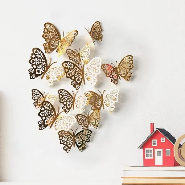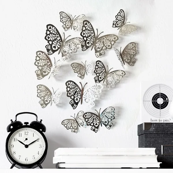 12 шт Креативное, с отверстиями, с украшением в виде бабочки наклейки для дома фестиваль макет картона выдолбленные настенное украшение бабочка