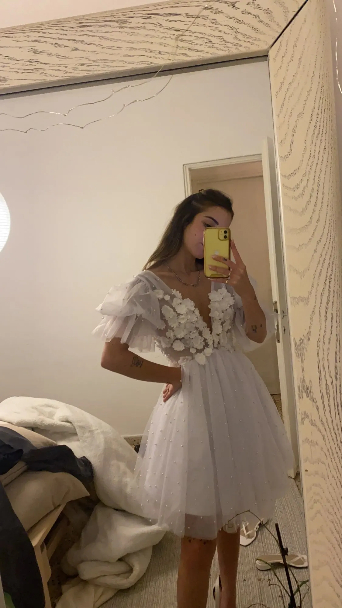 Женское мини-платье ручной работы, белое платье с цветочным бисером, глубоким V-образным вырезом и открытой спиной, летнее платье на выпускной