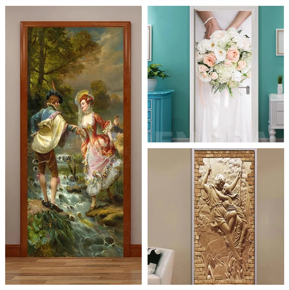 Европейская картина маслом, фигурка двери, наклейка s, фрески, гостиная, спальня, самоклеящаяся Водонепроницаемая Наклейка на стену, домашний декор, наклейка