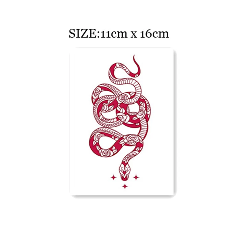 Наклейки-татуировки в виде Красной змеи 1 шт., водостойкие Временные татуировки для женщин, наклейки на мужской боди-арт на руку, на талию